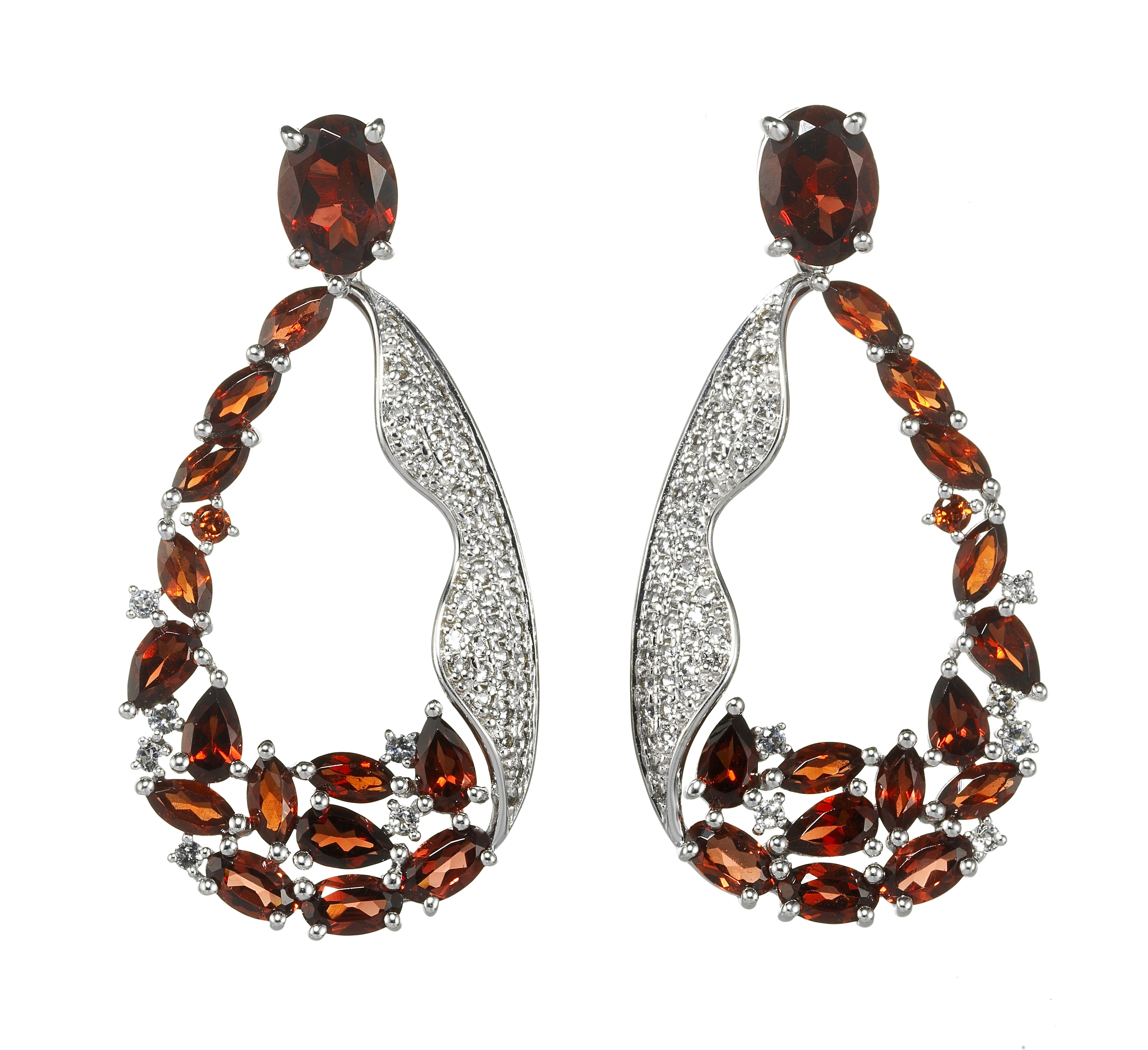 3294. *Pendants d'oreilles à motif de gouttes ajourées pavées de grenats