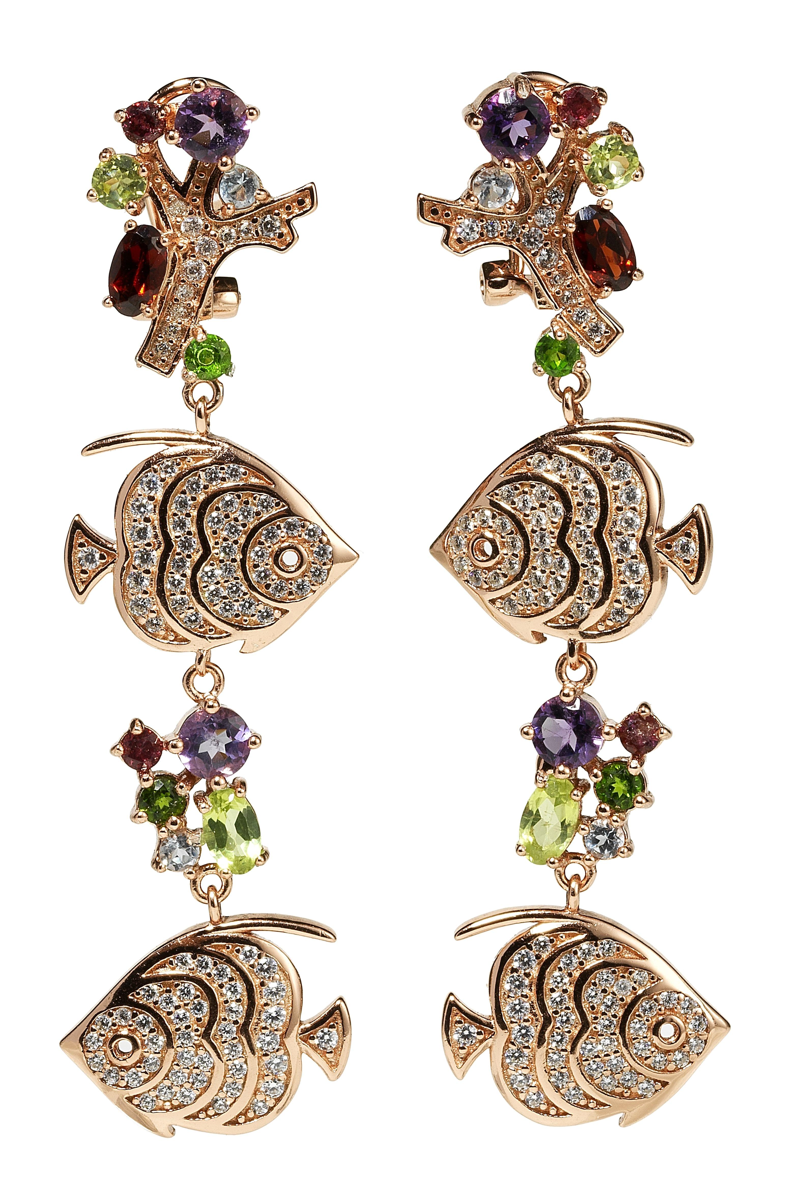 Rehaussés de pierres fines telles que le grenat, le péridot, et l'améthyste, argent rosé 925, H 5,5 cm. Pour les lots précédés d'un *, la TVA de 7,7% est due sur l'entier du prix d'adjudication.