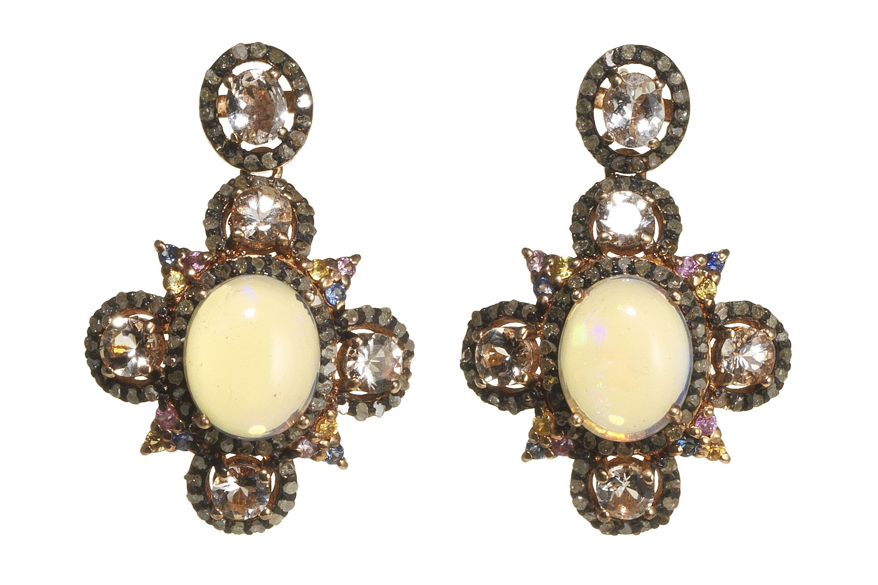 3225. *Pendants d'oreilles centrés d'une opale taille cabochon ovale (total env. 5,5 ct)