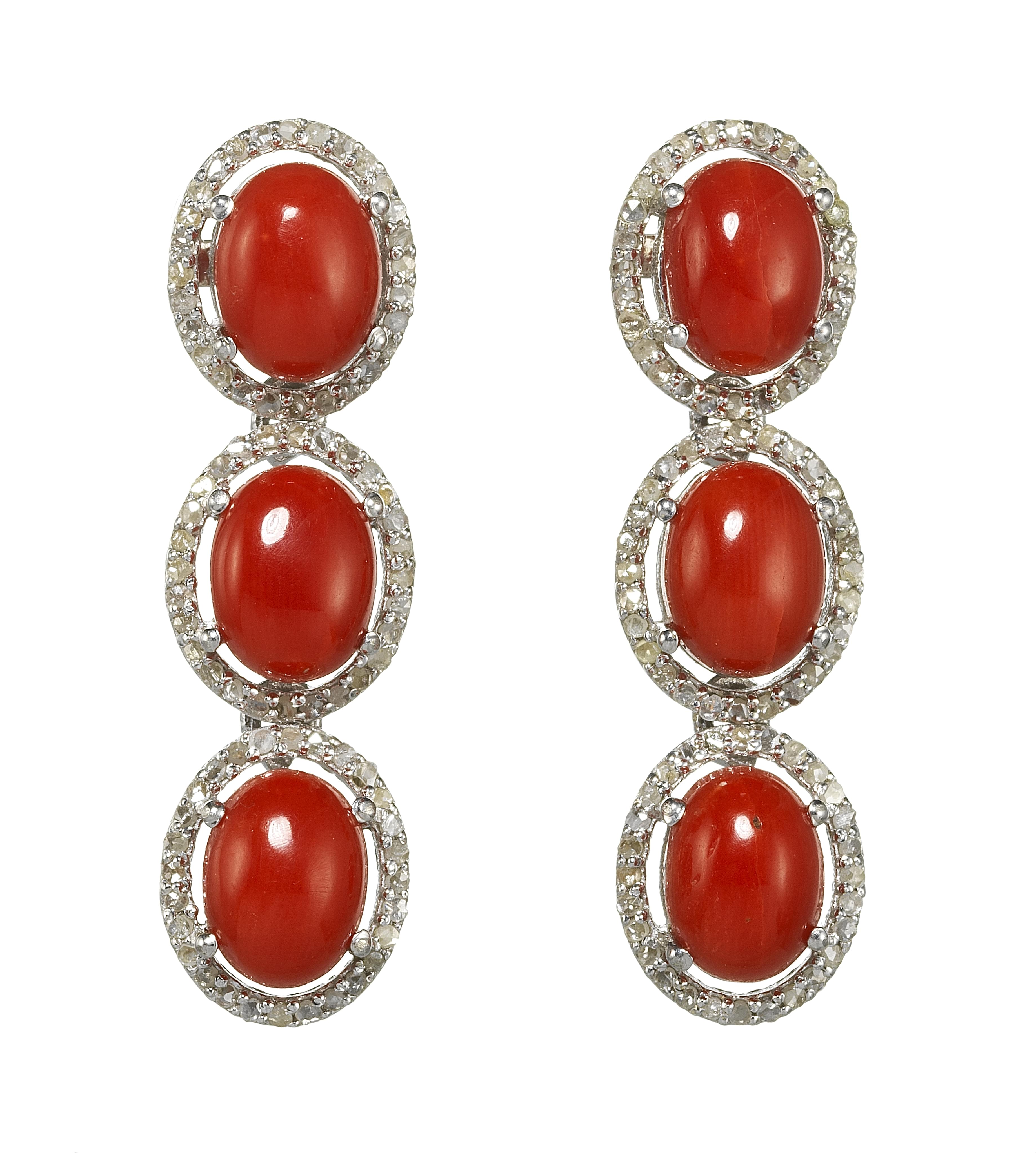 3051. *Pendants d'oreilles composés d'une ligne de corail taille cabochon ovale