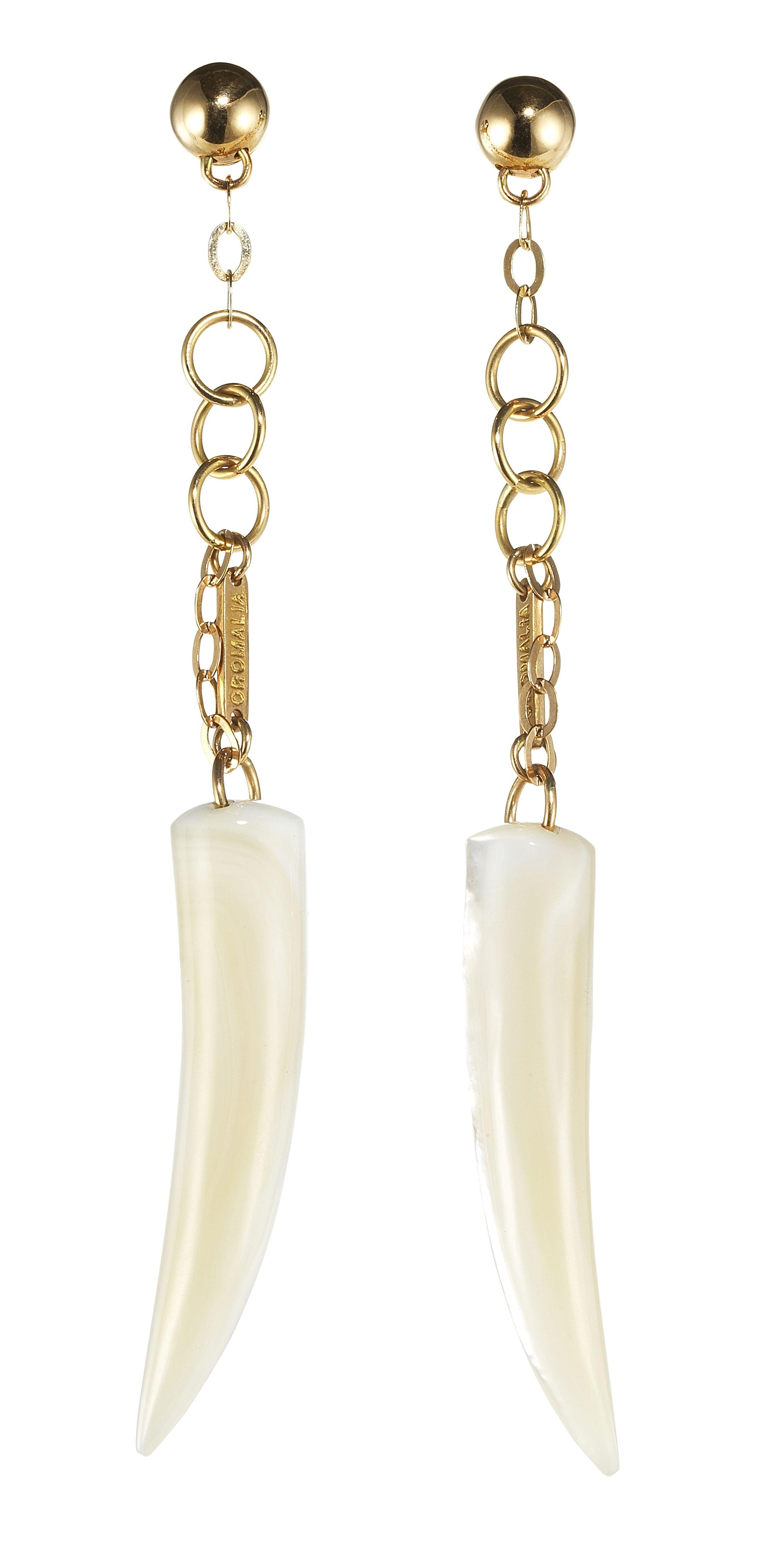 64. Pendants d'oreilles longs sertis de saphirs de couleurs bleus, r...