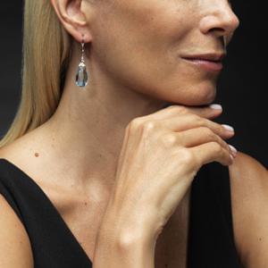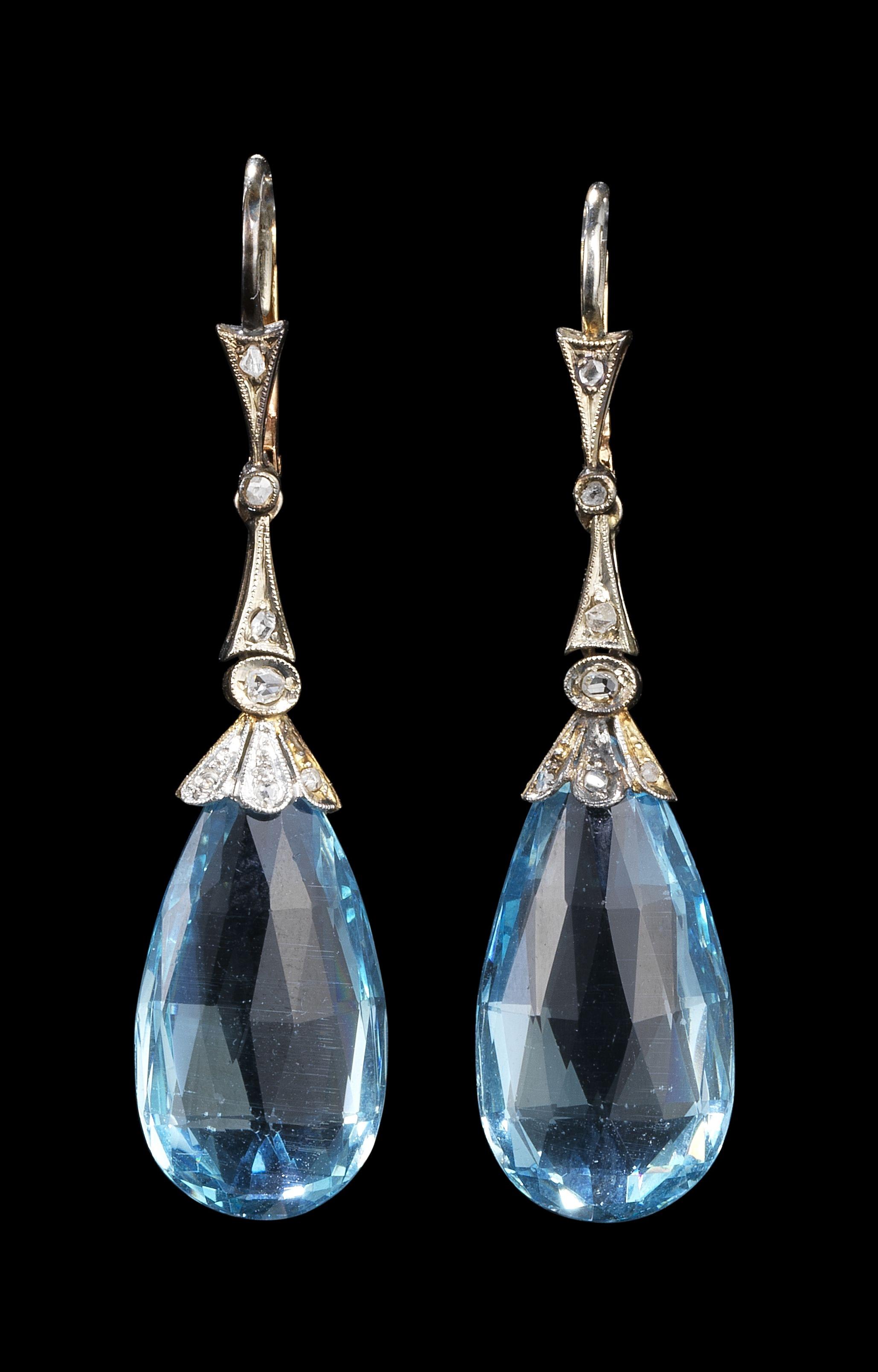 246. Pendants d'oreilles retenant chacun une aigue-marine taille briolette rehaussée de diamants taille rose