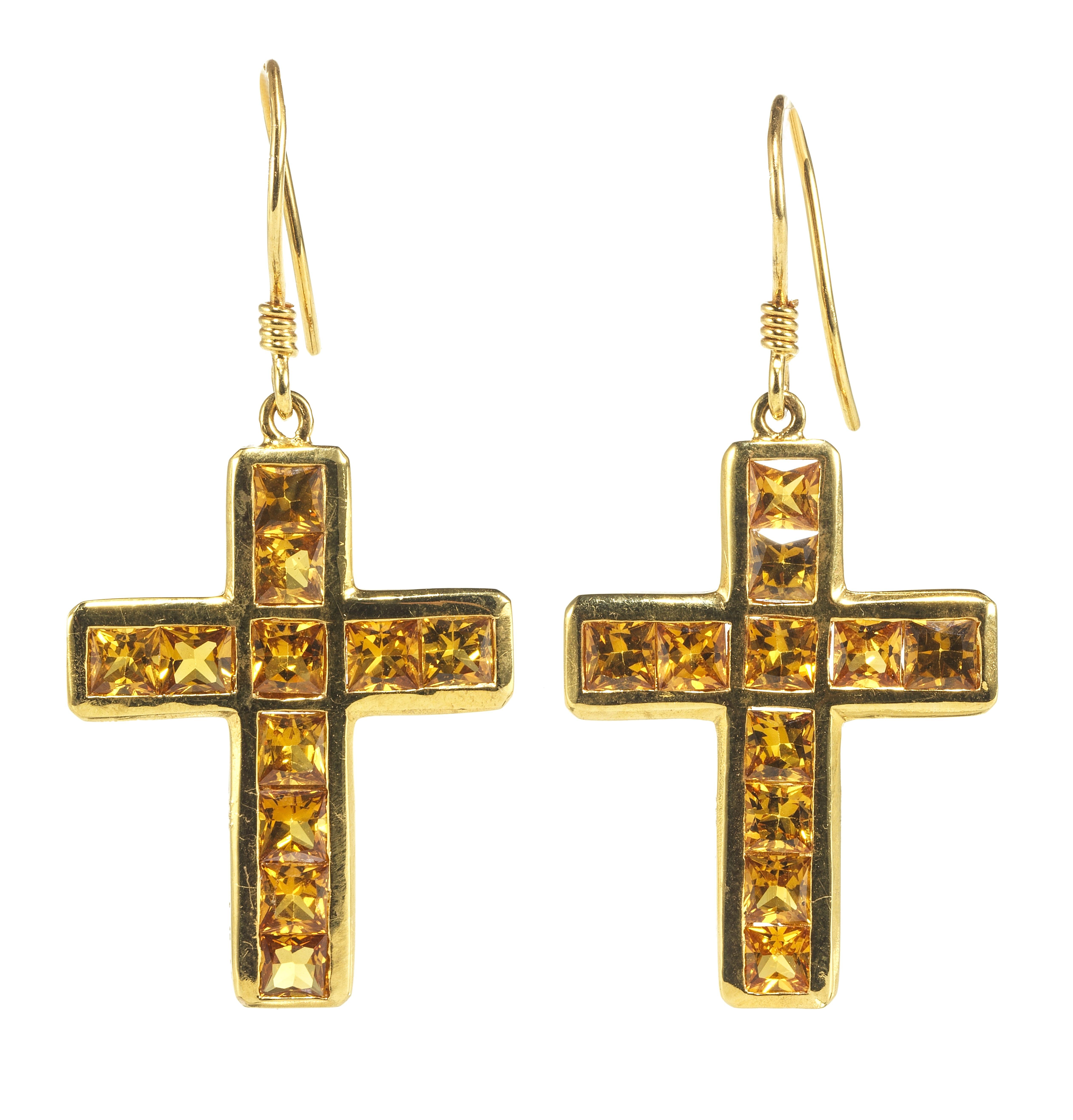 3298. *Pendants d'oreilles retenant des croix serties de citrines taille princesse