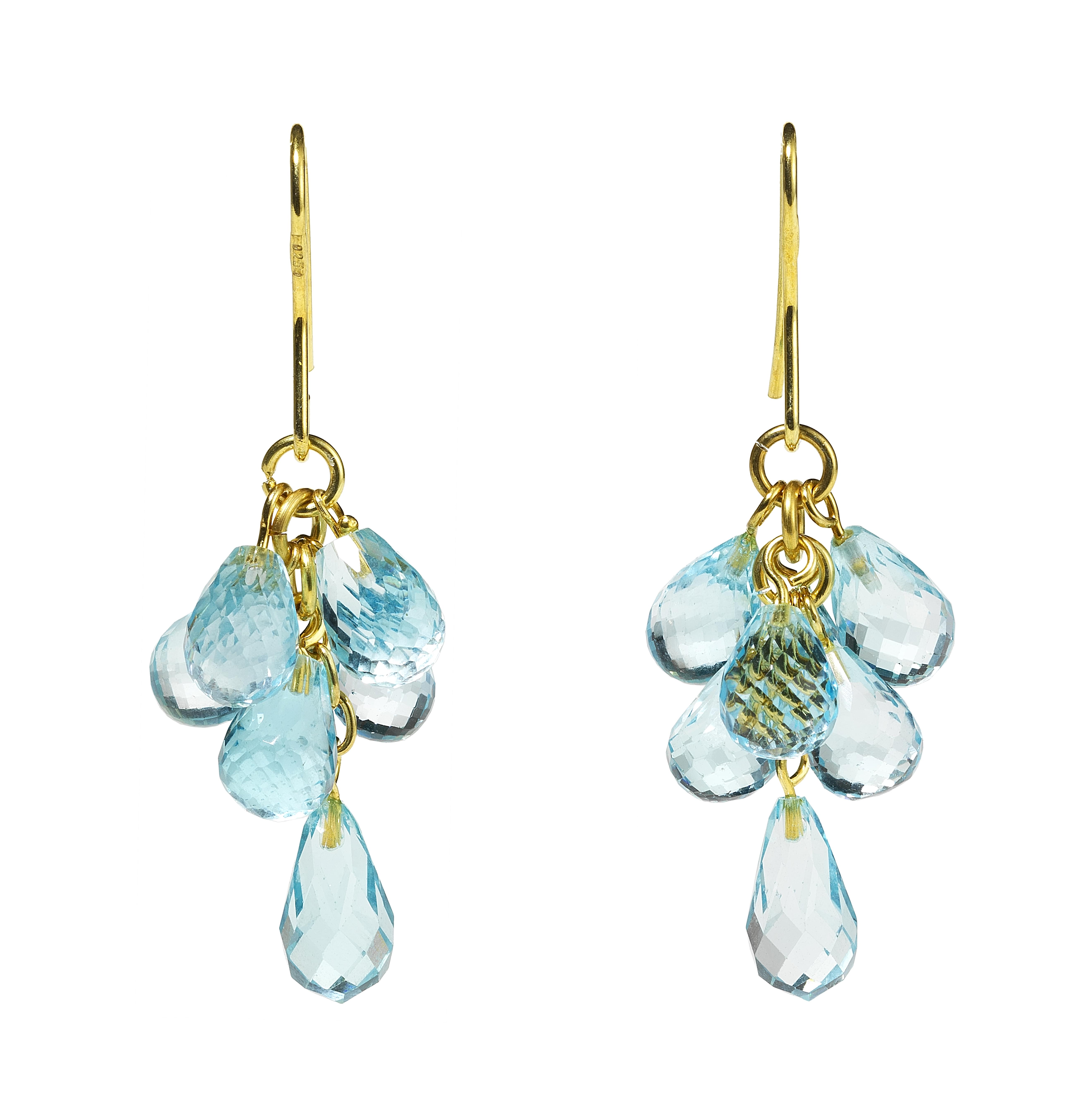 3235. *Pendants d'oreilles retenant des gouttes de topazes bleues en briolette
