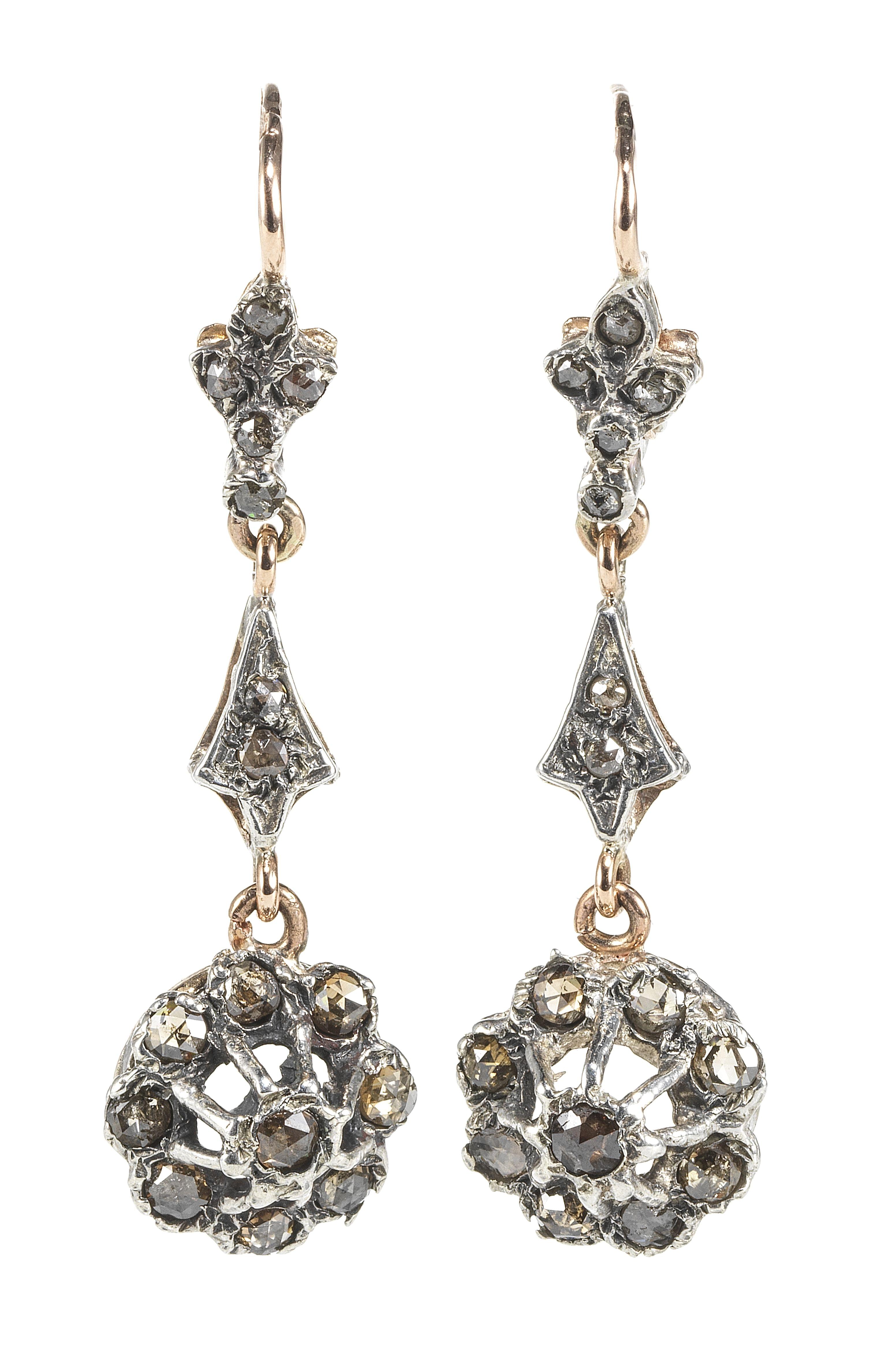 3090. Pendants d'oreilles retenant des motifs de fleurs serties de roses de diamants