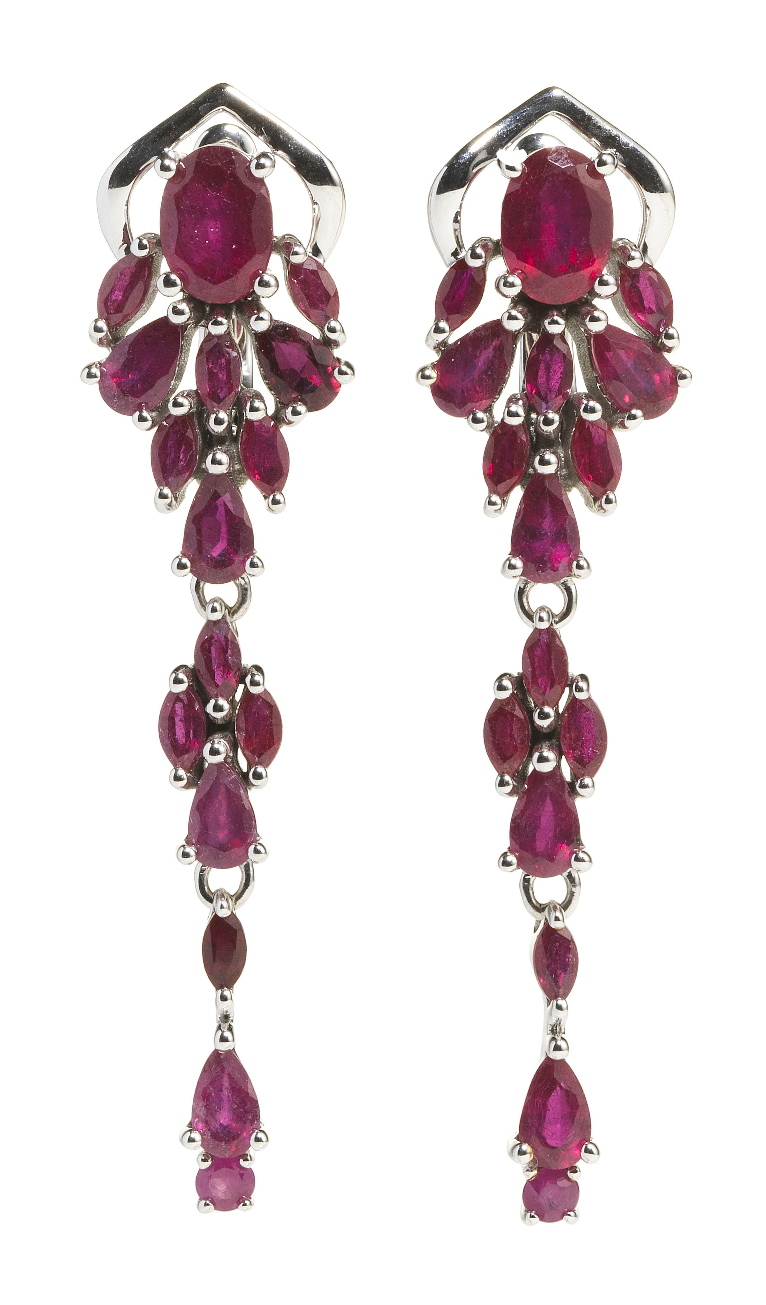 3400. *Pendants d'oreilles retenant des rubis en cascade