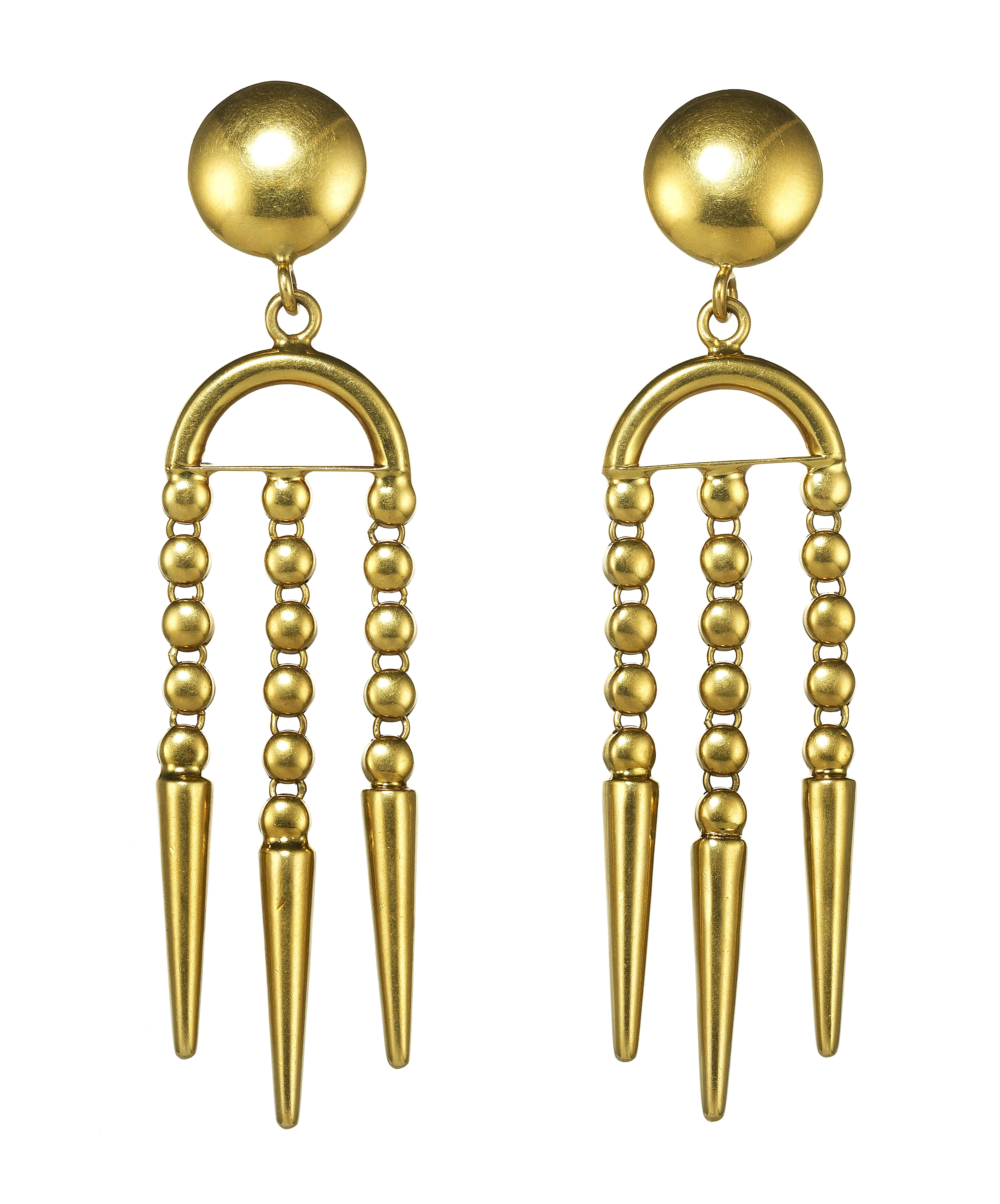63. *Pendants d'oreilles de style Art déco retenant chacun une tourm...