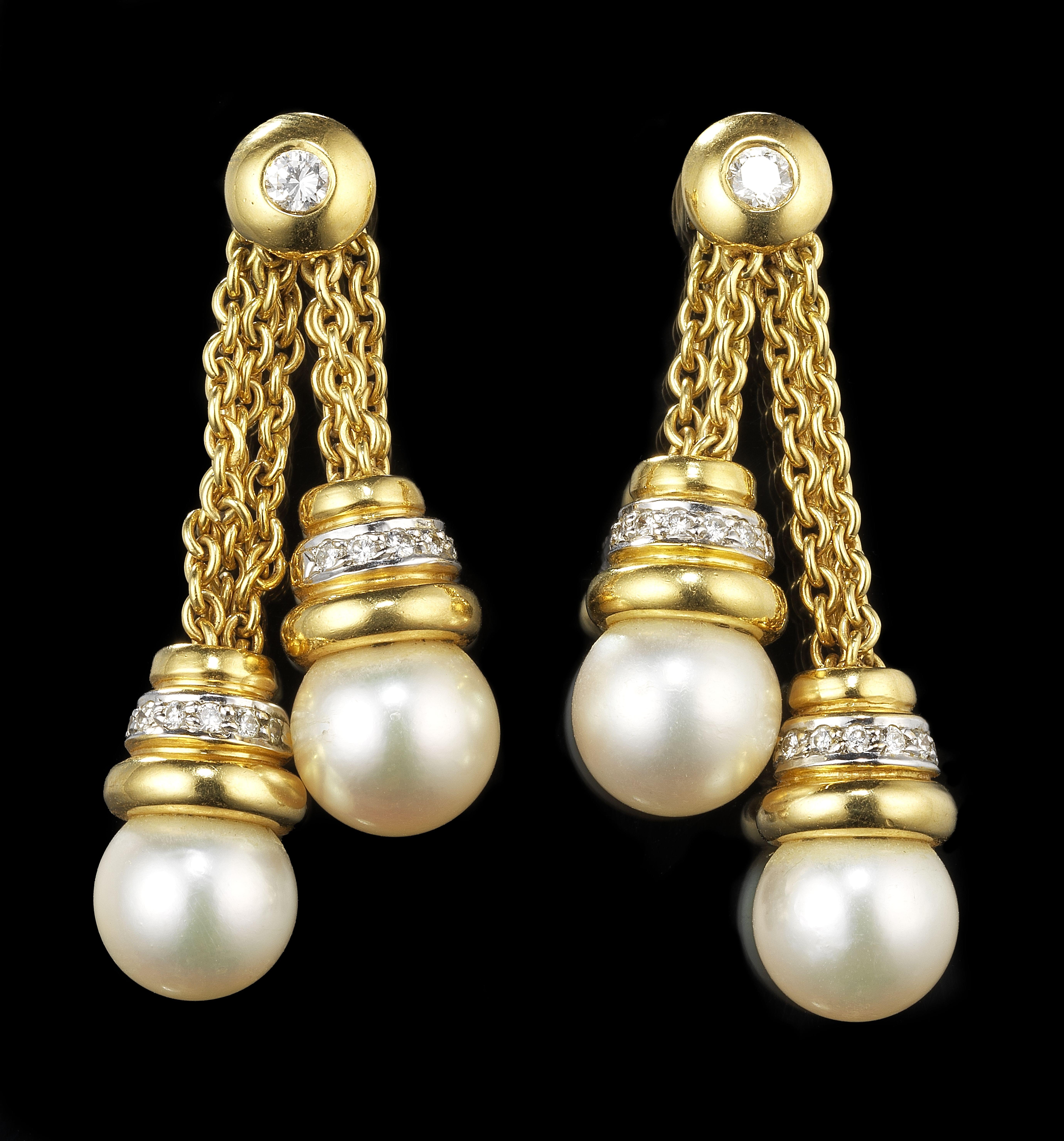 mants (total 1,1 ct)Or gris 750, H 3,5 cm, 10 g, accompagnés d'u...