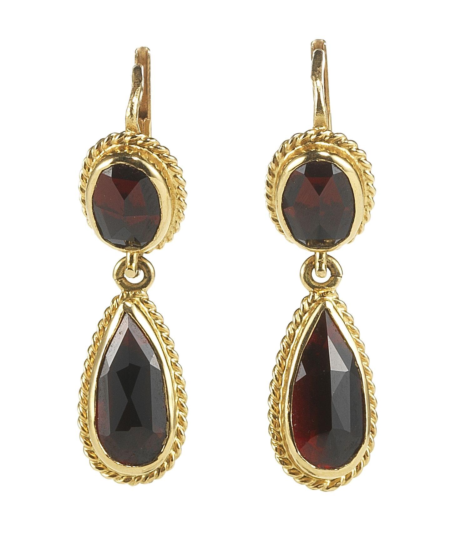 3102. *Pendants d'oreilles sertis de grenats taille ovale et taille poire