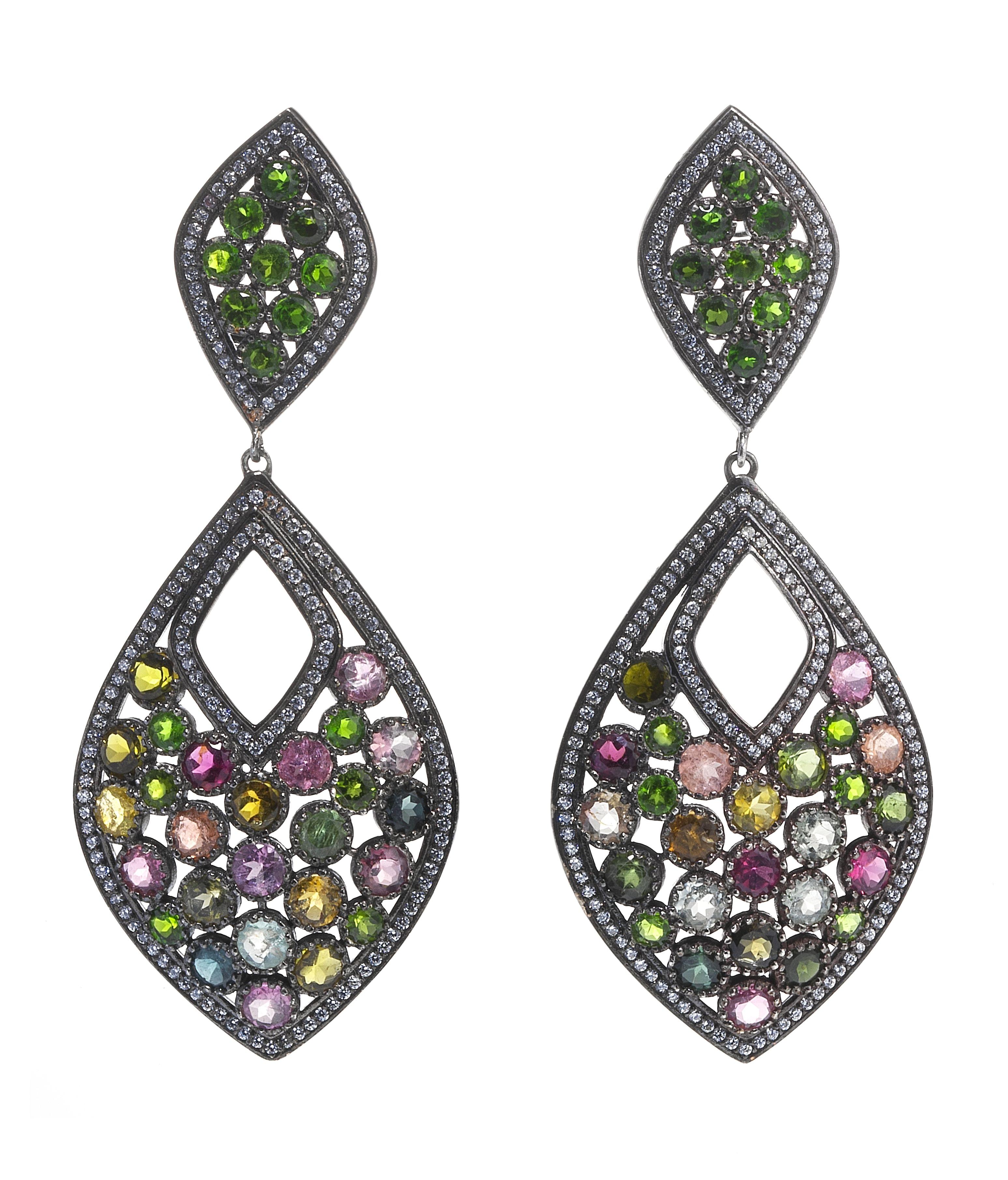 182. Pendants d'oreilles sertis de tourmalines vertes et roses taille...