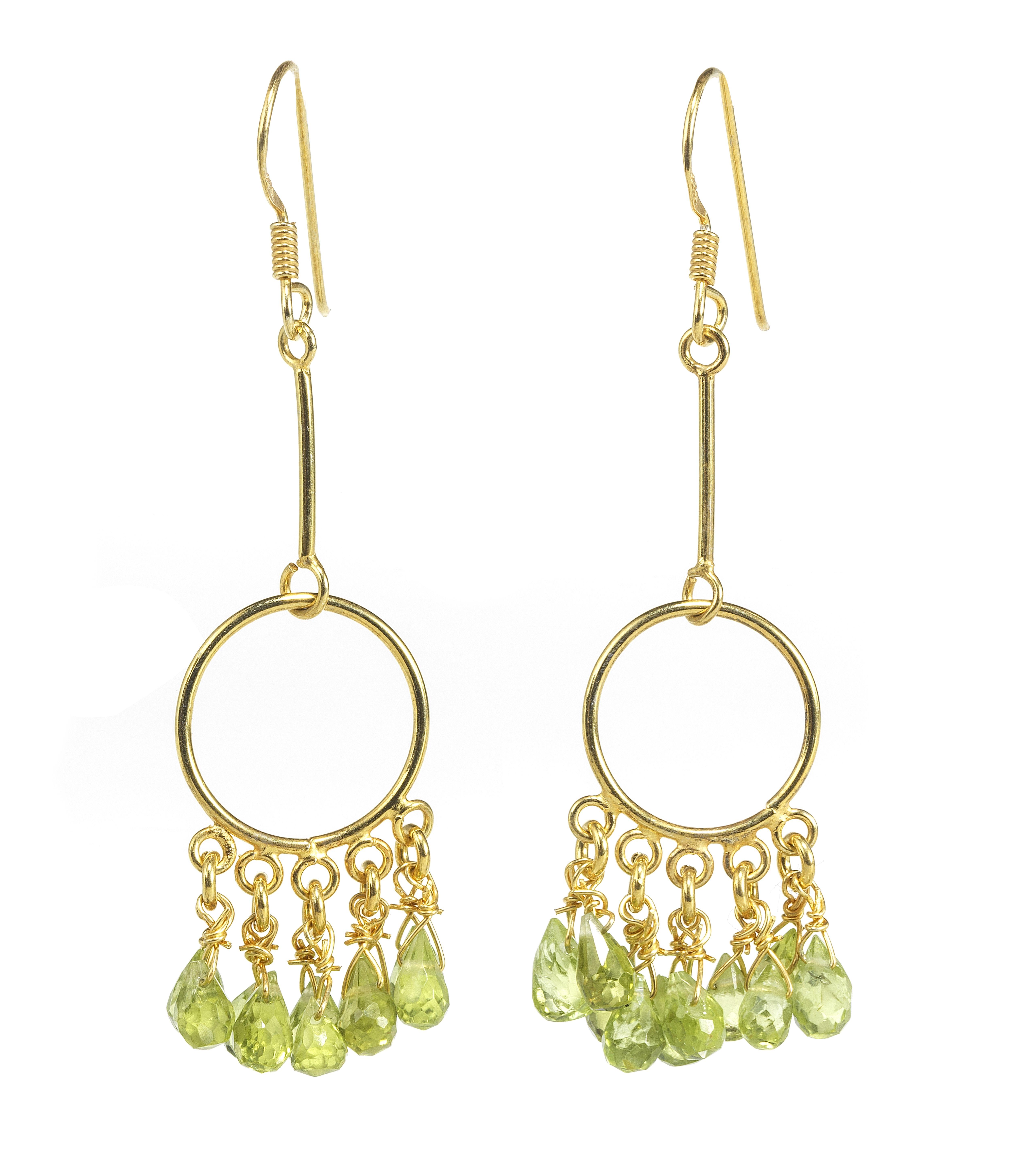 3056. *Pendants d'oreilles stylisés retenant des péridots taille briolette