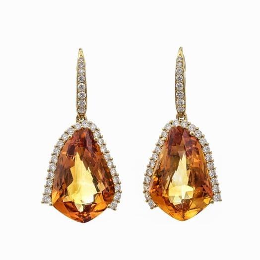 89. Pendants d'oreille sertis de citrines (env. 17 ct) entourées de diamants