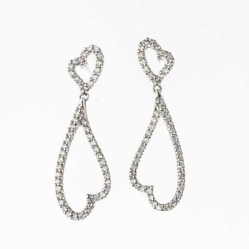 3133. Pendants d'oreilles à motif de deux cœurs ajourés et sertis de diamants