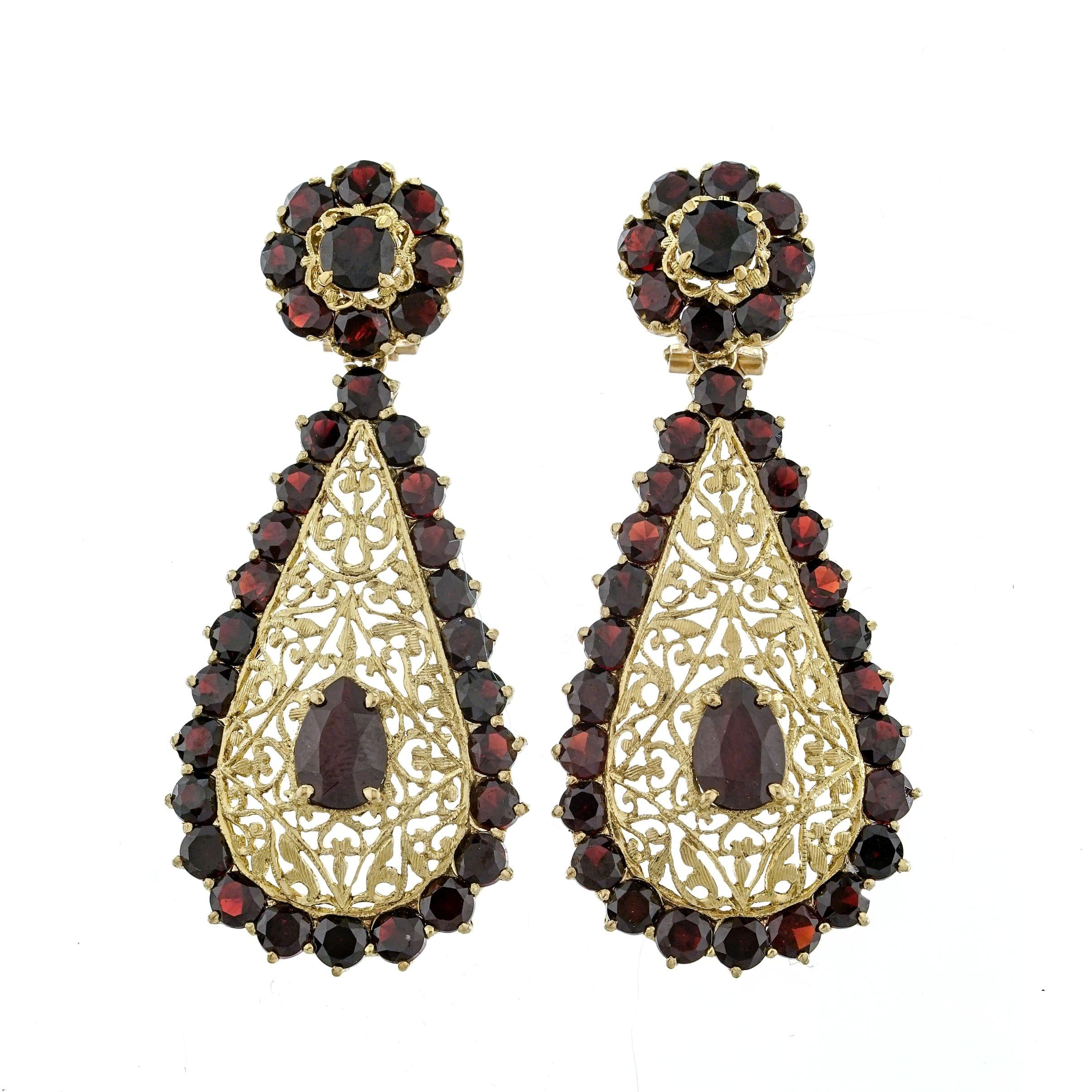 931. Pendants d'oreilles ajourés sertis de grenats