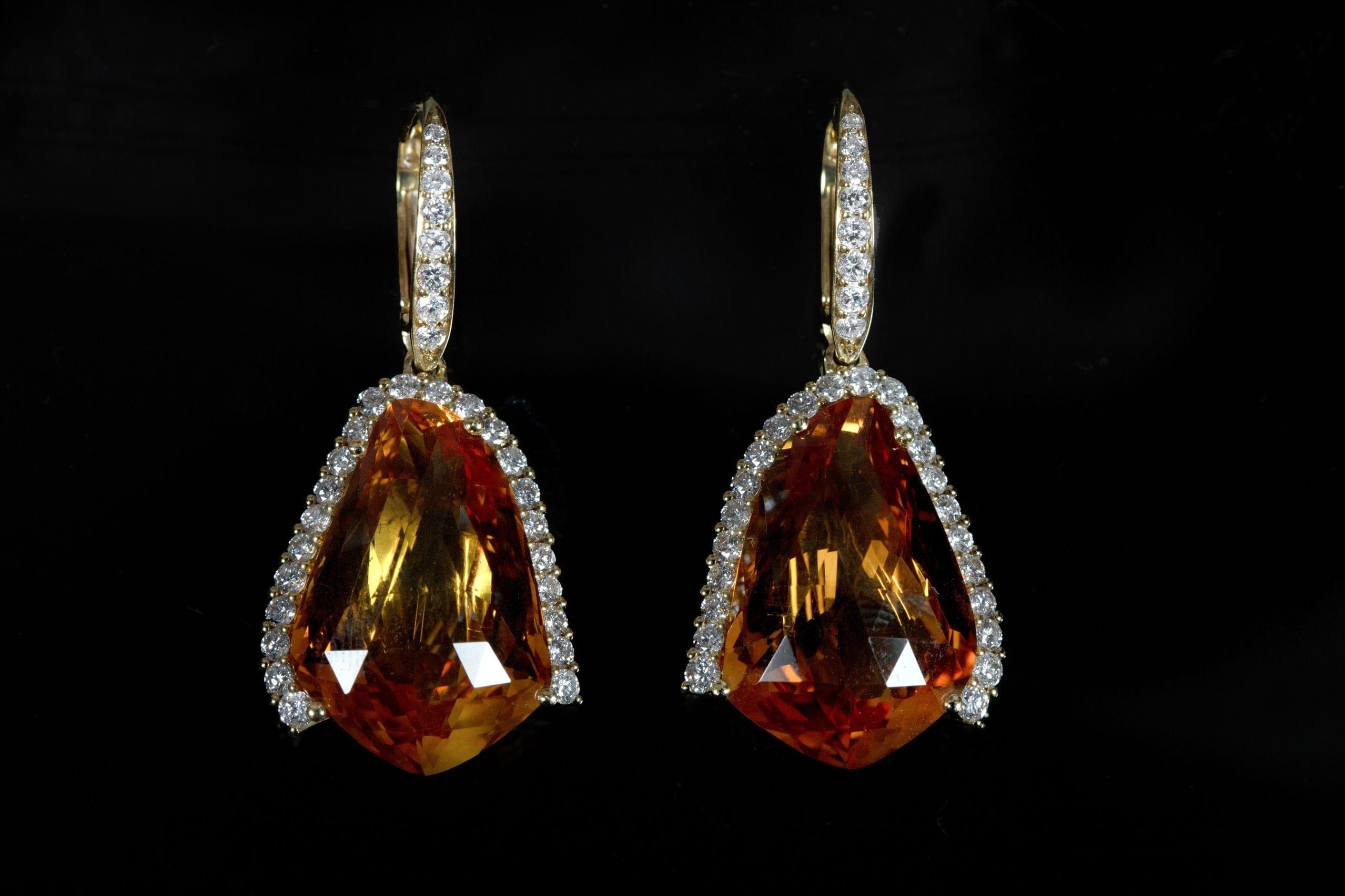 802. Pendants d'oreilles sertis de citrines taille fantaisie rehaussées de diamants (env. 0,8 ct)