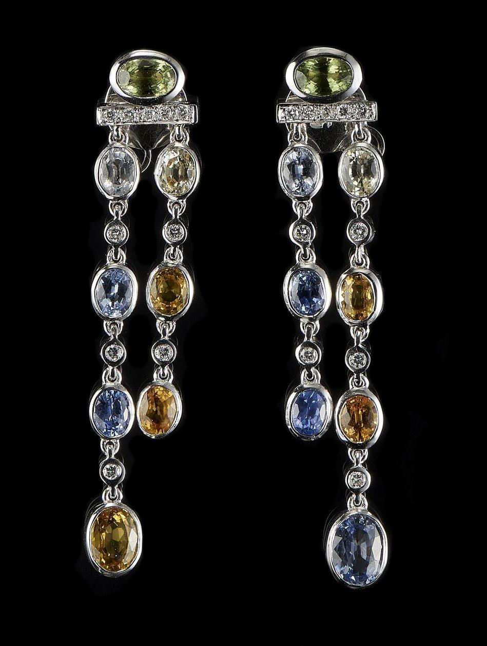 172. Pendants d'oreilles sertis de saphirs de couleur rehaussés de diamants