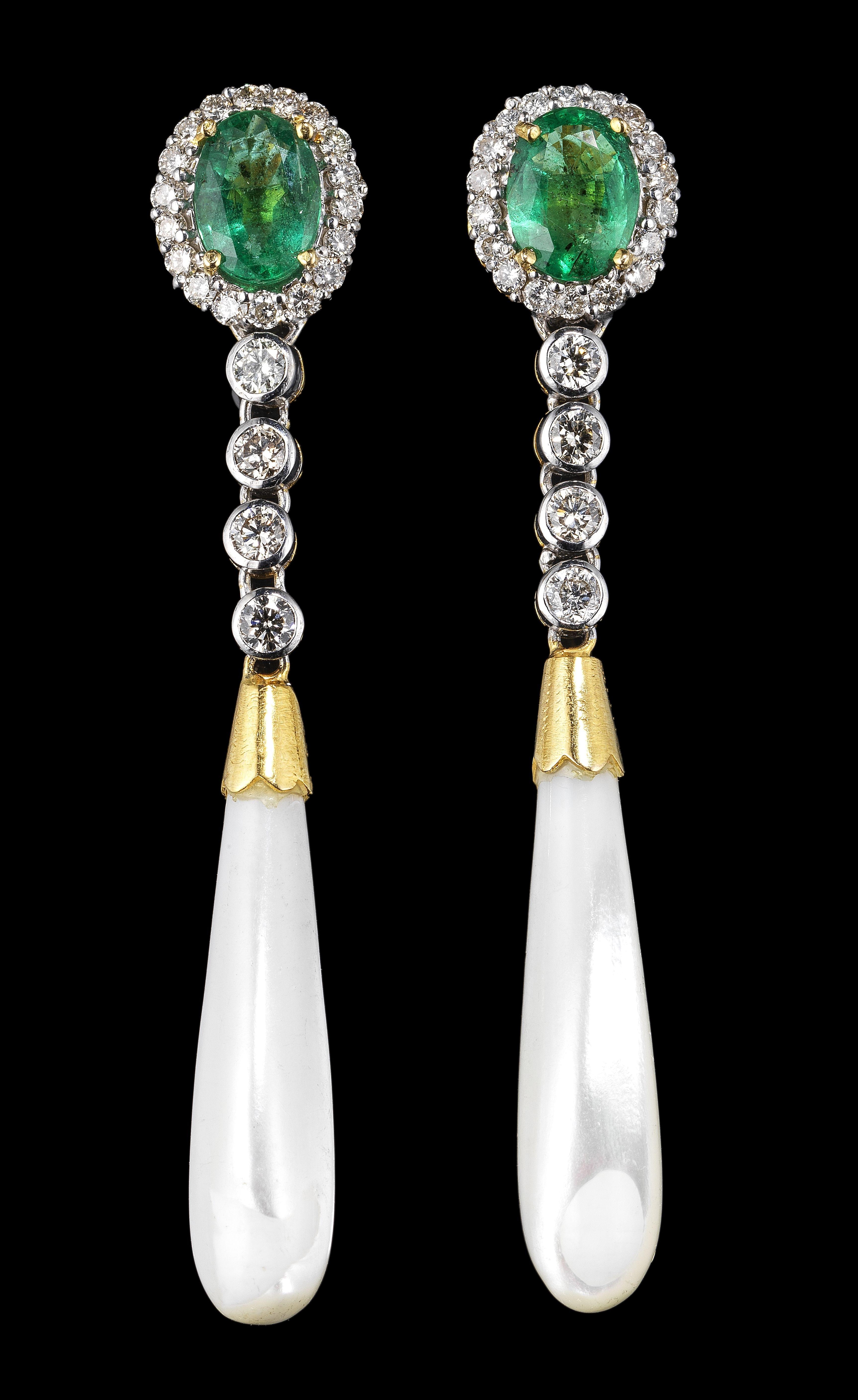30. *Pendants d'oreilles sertis d'émeraudes taille ovale (total env. 3 ct)