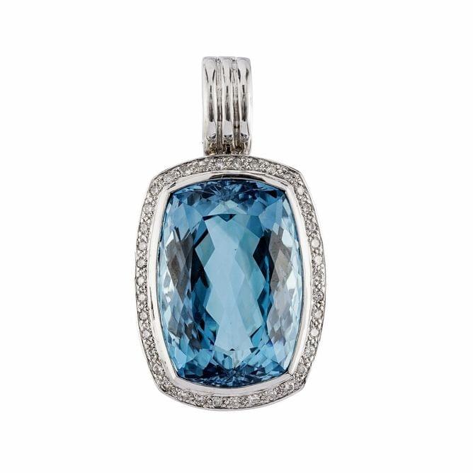 309. Pendentif à bélière ouvrante retenant une importante topaze bleue (env. 78 ct) entourée de diamants
