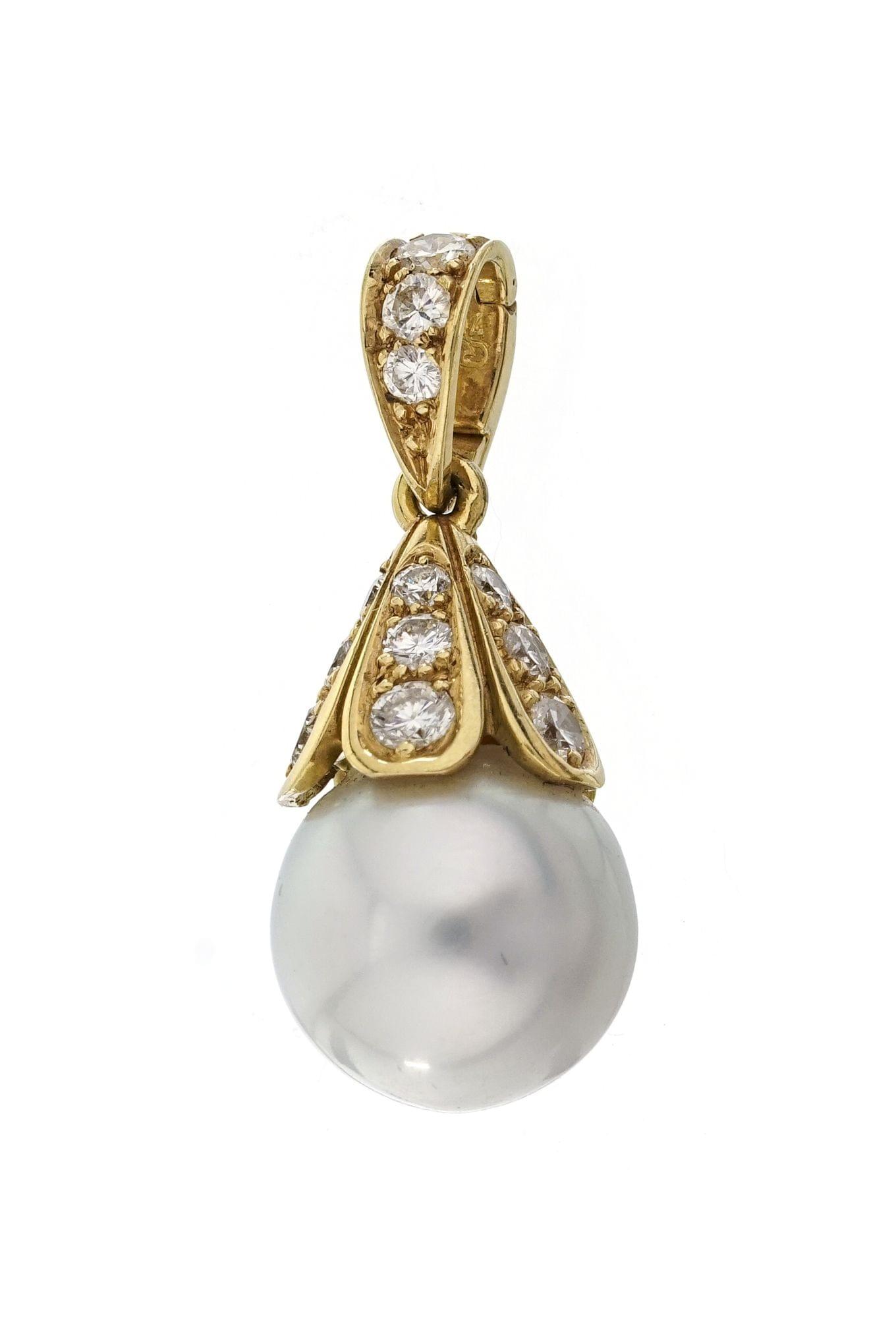 918. Pendentif à bélière ouvrante retenant une perle grise rehaussée d'un pavage de diamants