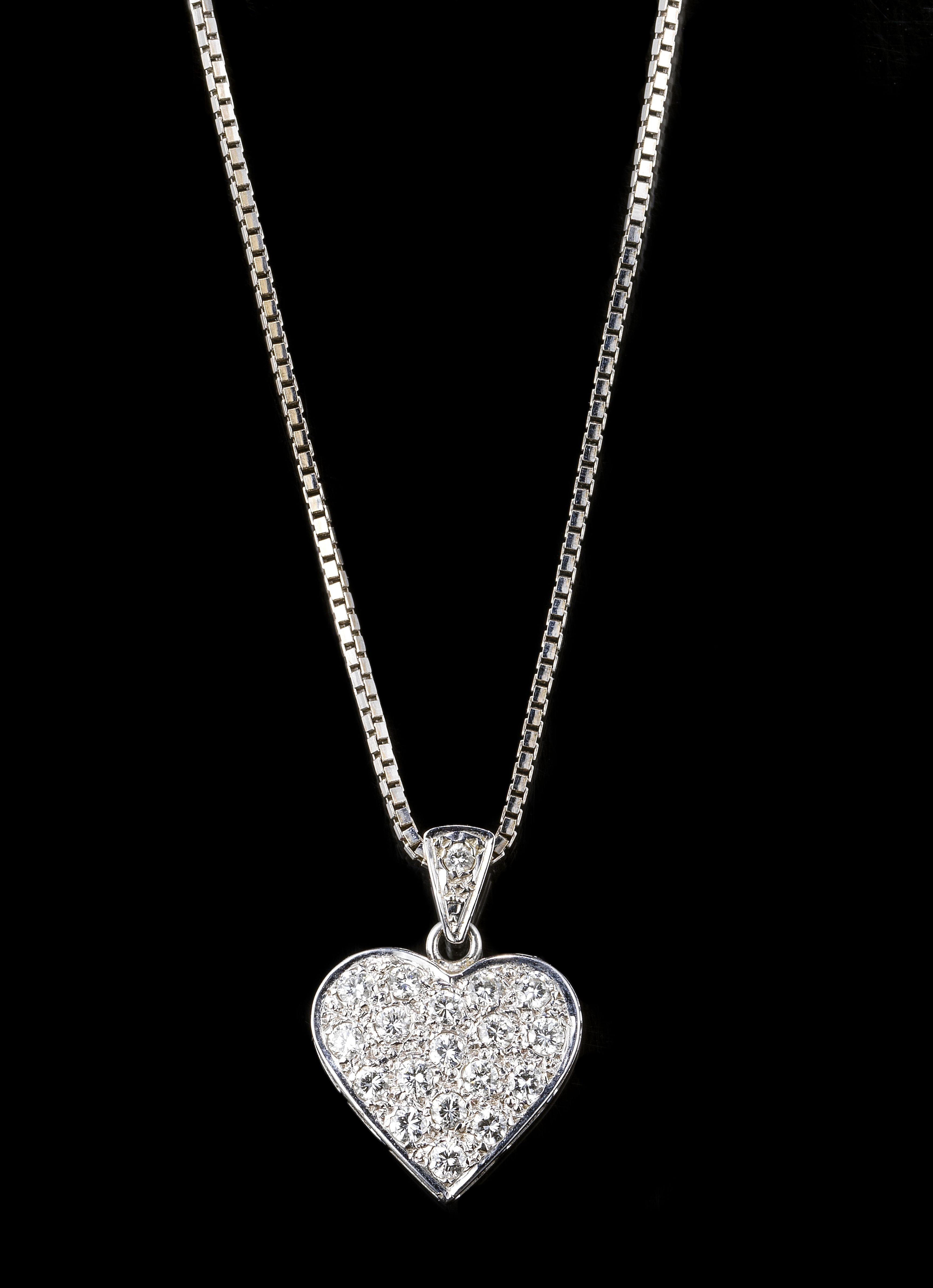 3446. *Pendentif à motif de cœur pavé de diamants (env. 0,8 ct) retenu par une chaîne à maille vénitienne