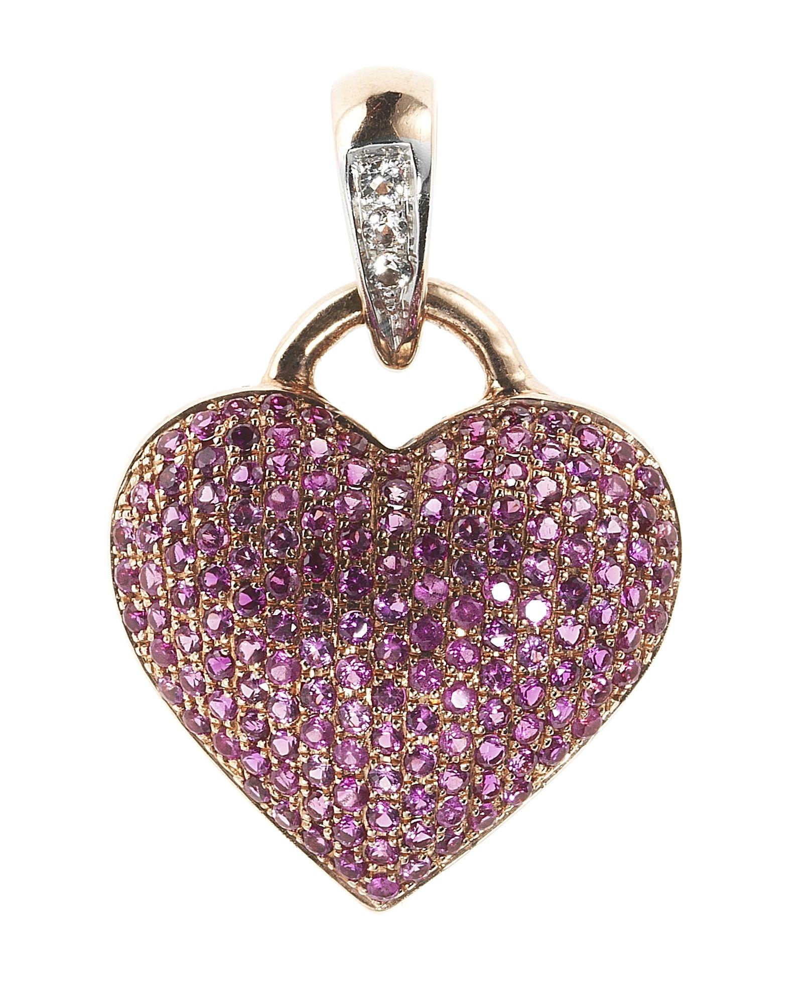 3137. Pendentif à motif de cœur pavé de rubis, la bélière sertie de saphirs blancs