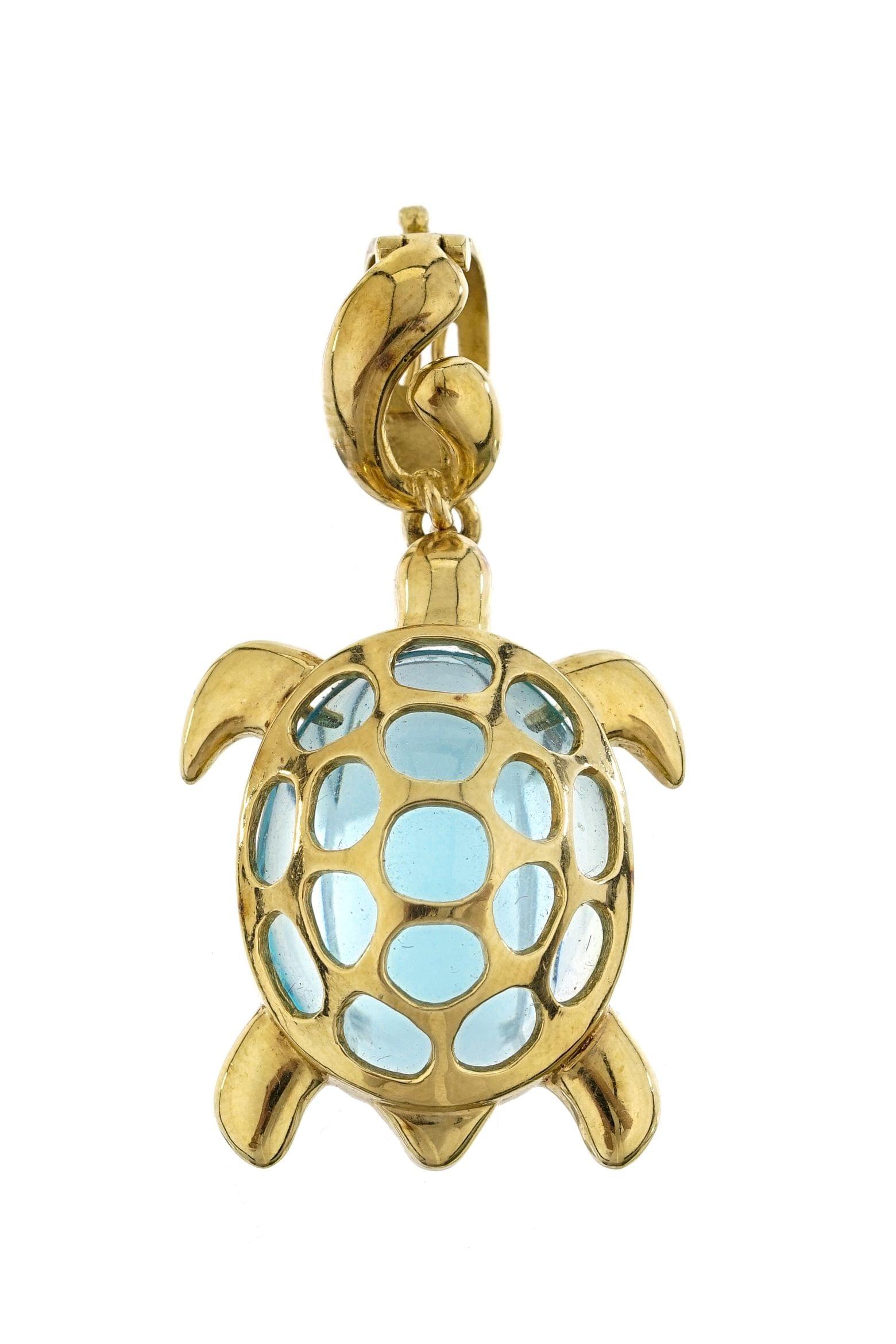 1034. Pendentif à motif de tortue sertie d'une topaze bleue
