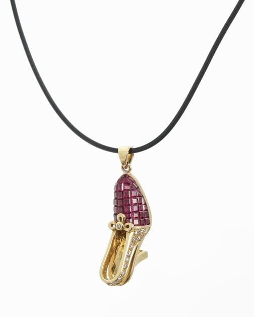 82. Pendentif à motif d'escarpin pavé de rubis en serti invisible (env. 4.5 ct) et de diamants