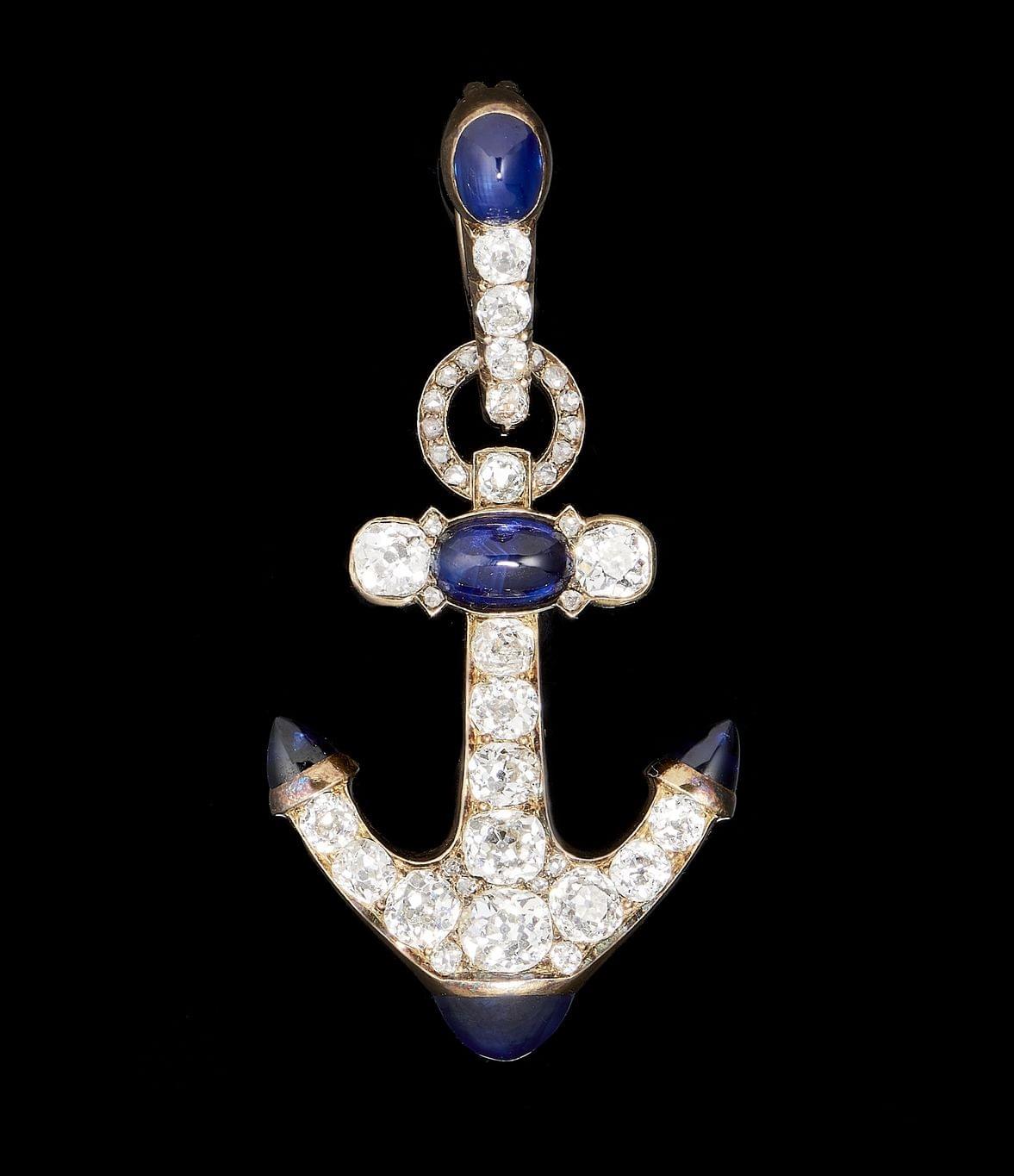 361. Pendentif ancre de marine, symbole de Saint-Petersbourg, serti de diamants et saphirs cabochons