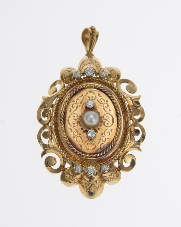Cadran gris, aiguilles argentées, or gris 750, 25x21 mm, poids b...