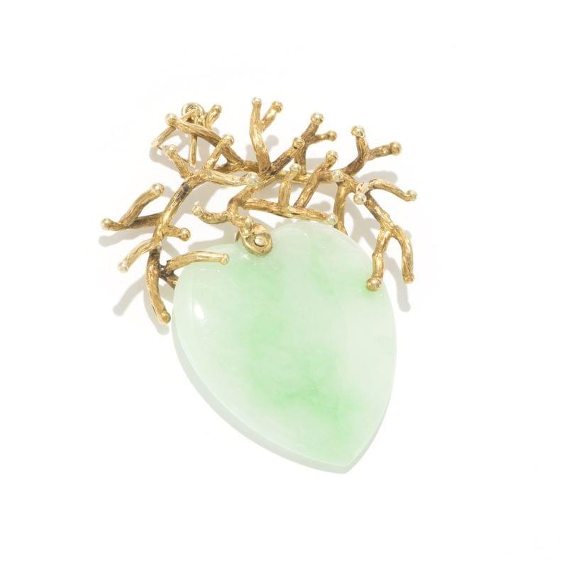 72. Broche de style Art Déco en jade et onyx sertie de diamants et r...