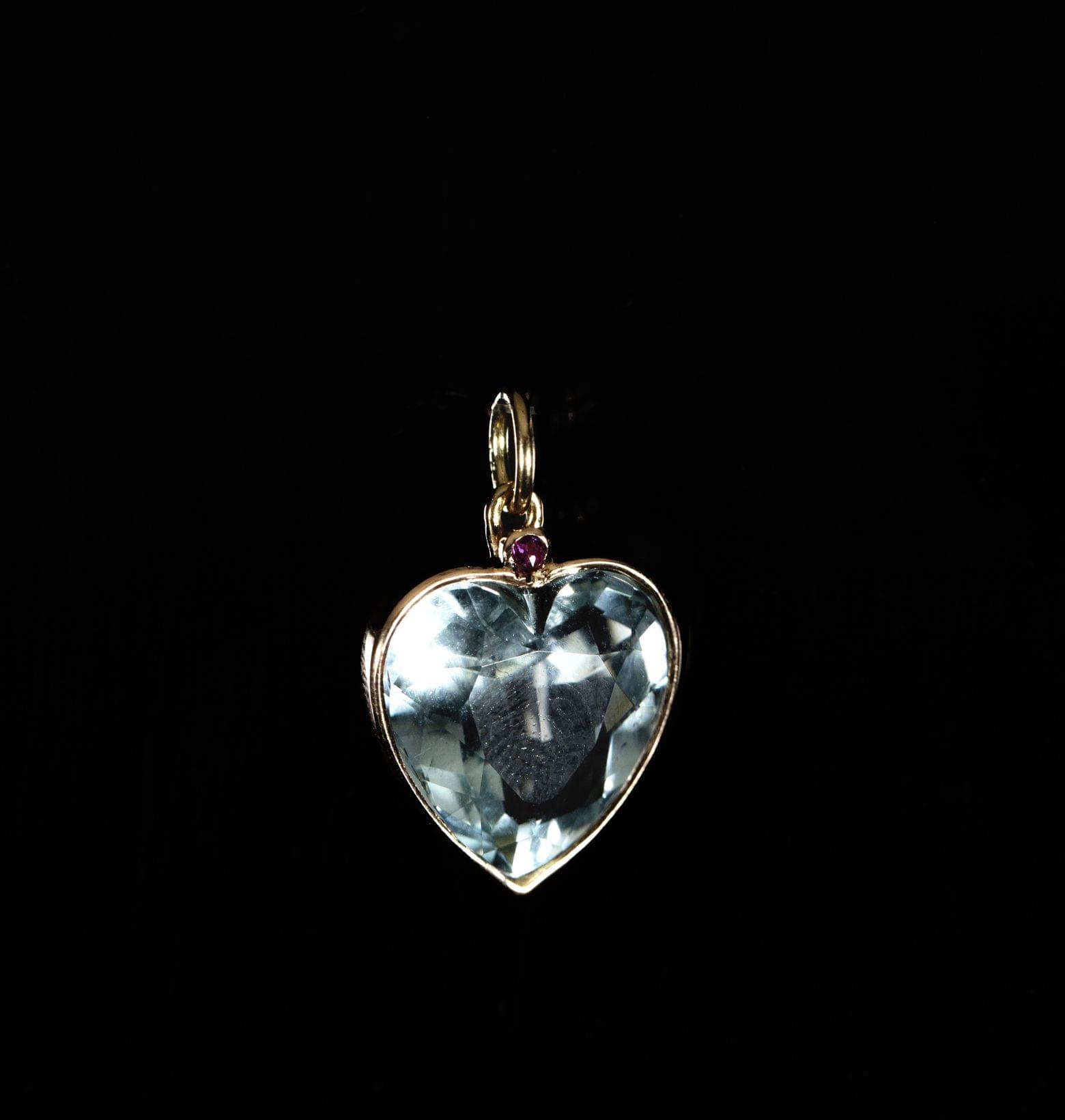 824. Pendentif cœur serti d'une aigue-marine taille cœur
