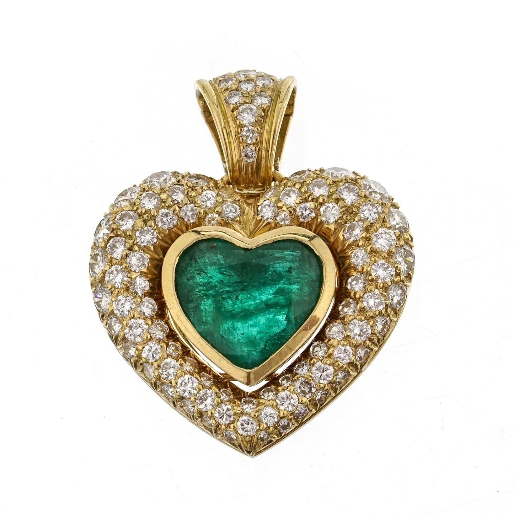 963. Pendentif cœur serti d'une émeraude taille cœur entourée d'un pavage de diamants