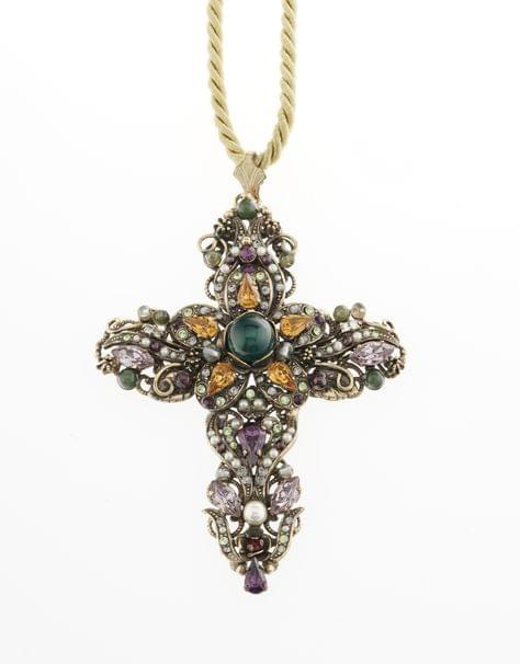 55. Sautoir retenant un pendentif à décor de fleur en micro-mosaïque