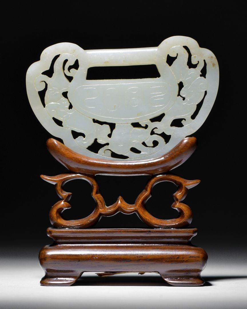 Jade sculpté et ajouré de chauves-souris, Chine, 8x5 cm