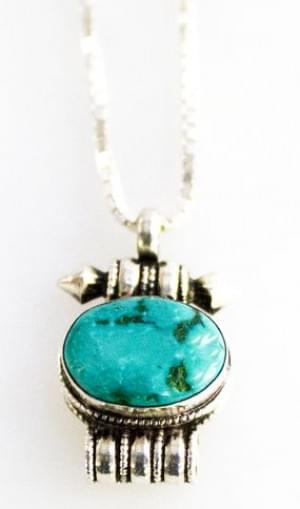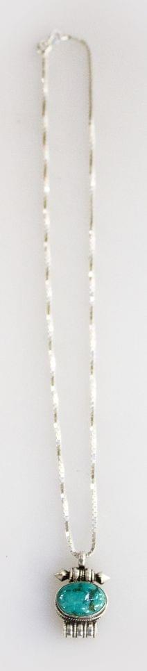 3017. Pendentif en turquoise retenu par une chaîne à maille vénitienne