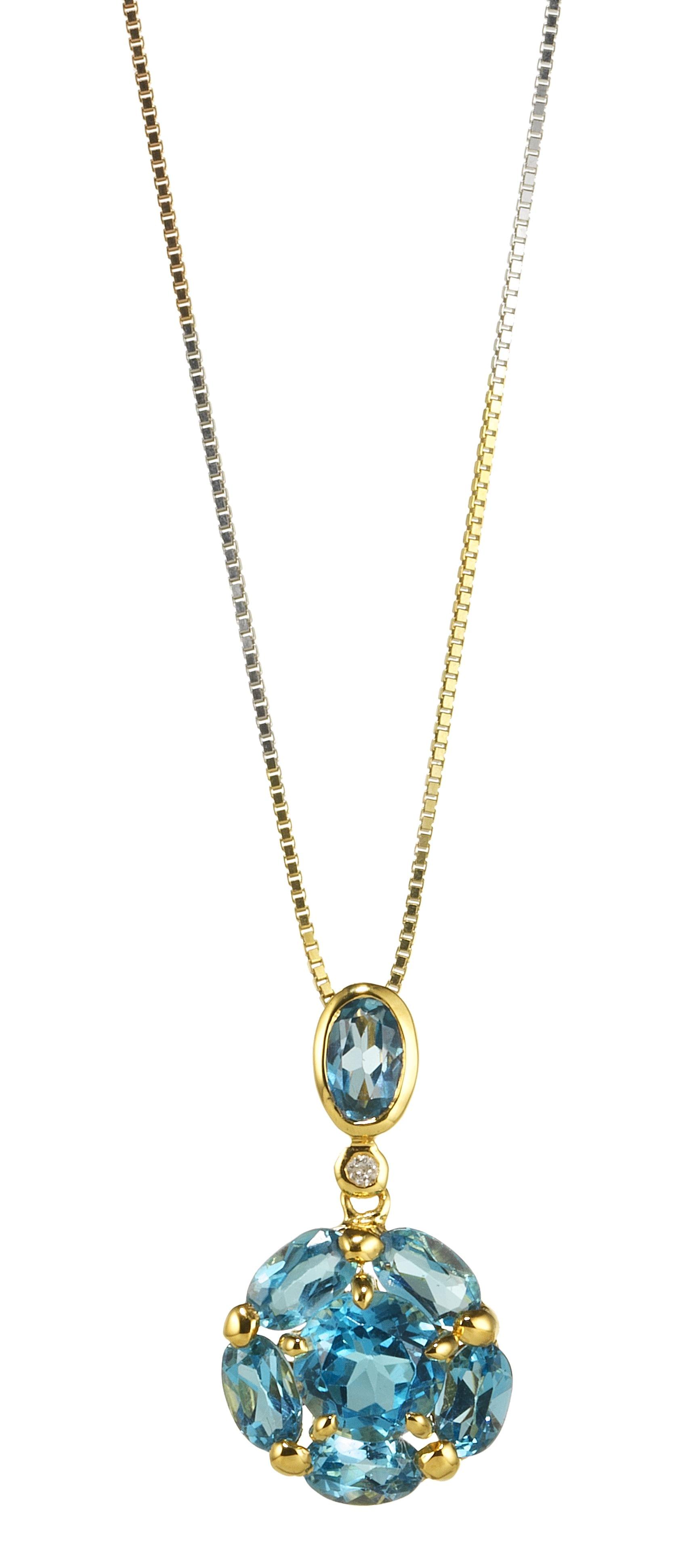 3428. *Pendentif fleur pavé de topazes bleues (total env. 1,9 ct) rehaussées d'un diamant