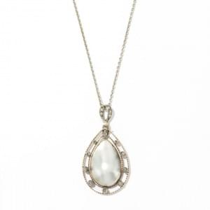3159. Collier retenant un pendentif goutte nacre et des diamants taill...