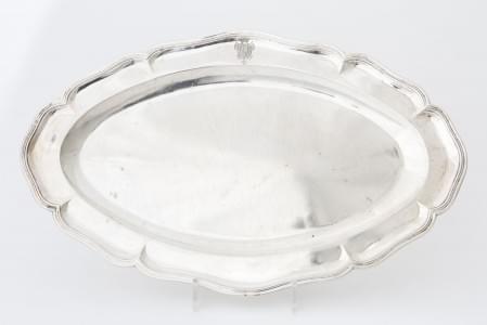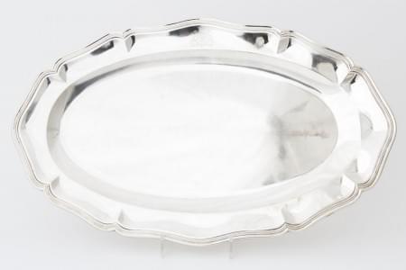 650. Grande coupe ovale à bordure de feuilles d'eau et anses serpents