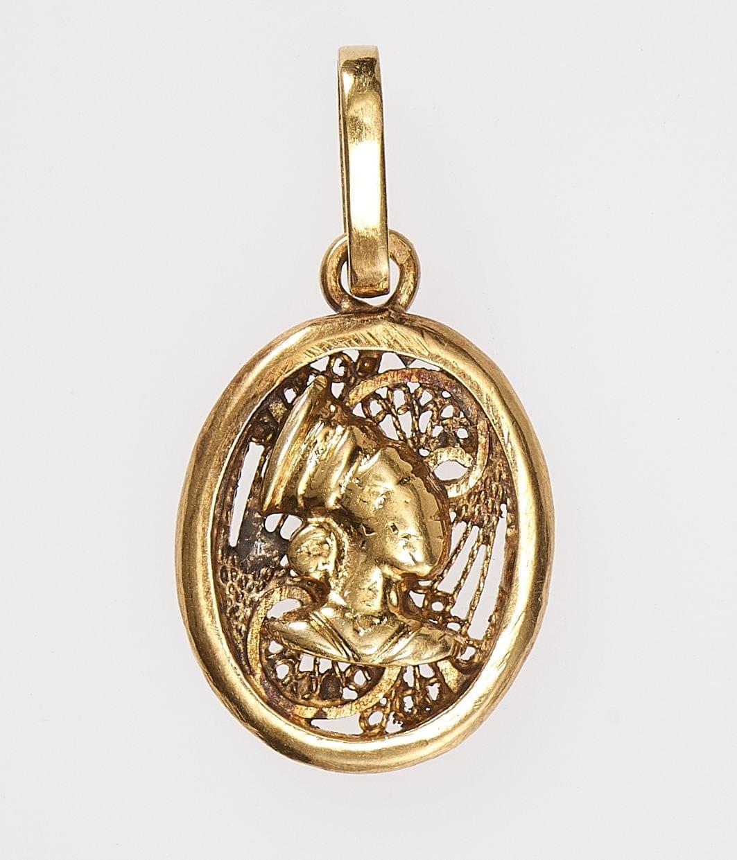 69. Chaîne à maille vénitienne retenant un pendentif Art déco ajouré...