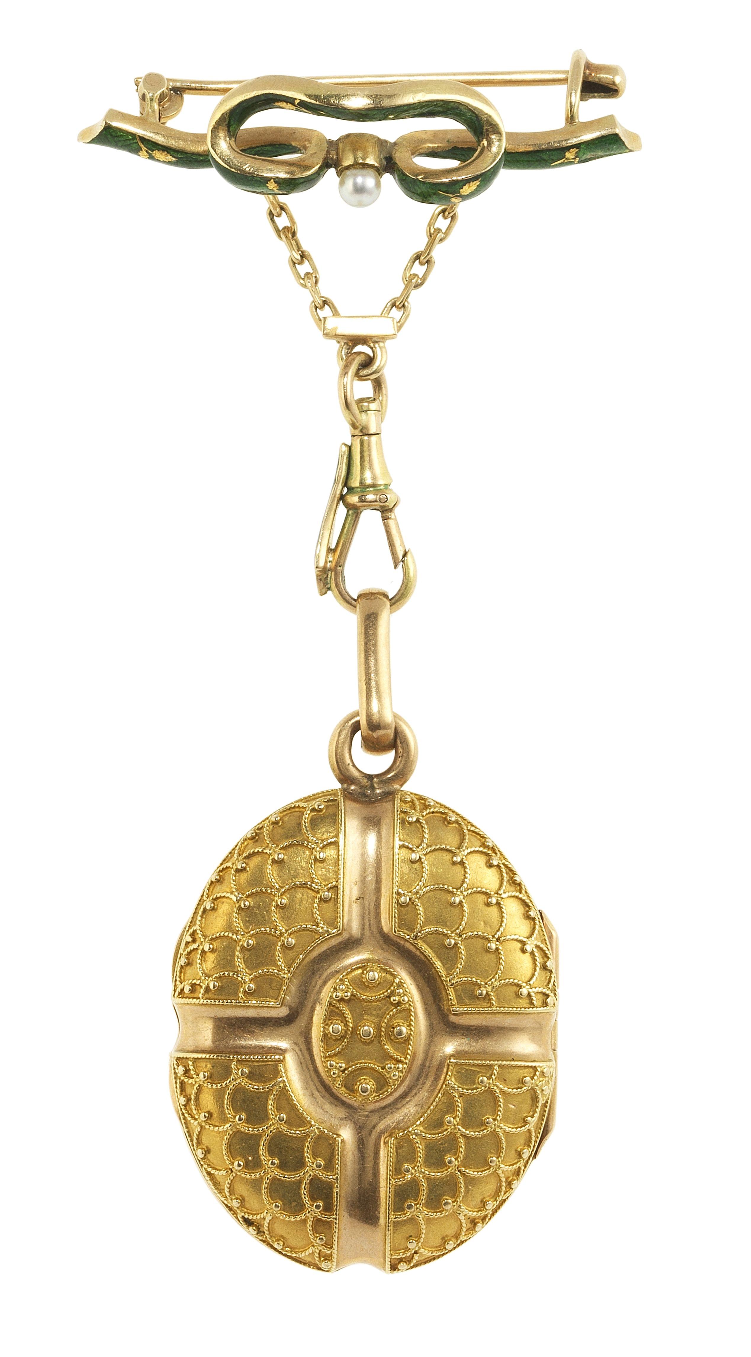 144. Collier composé de perles et de perlettes d'or en alternance ret...