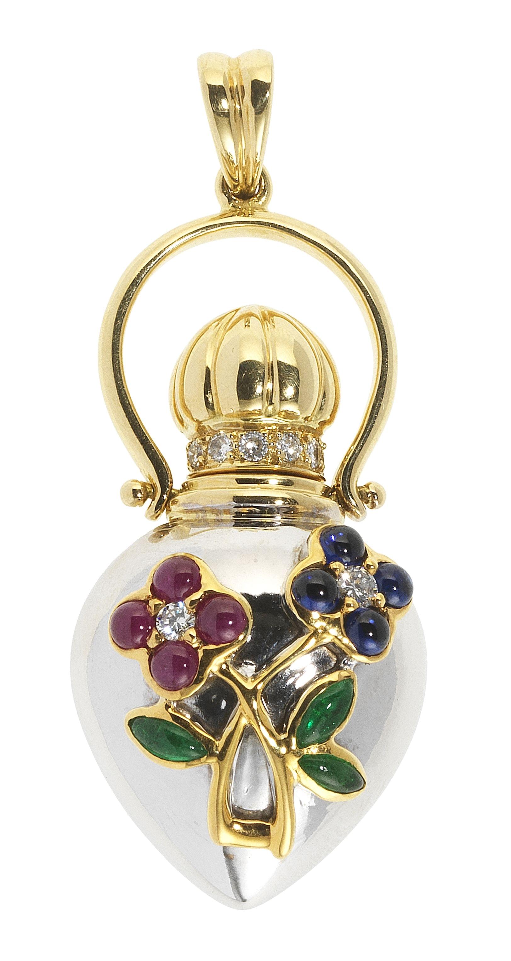 3413. Pendentif retenant un parfumoire à motif de deux fleurs