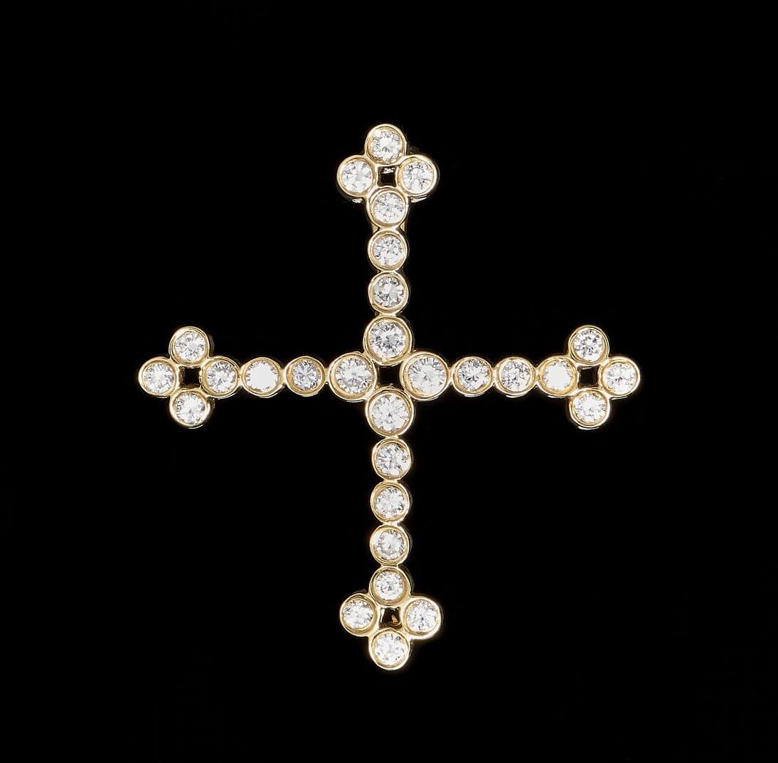 184. Pendentif retenant une croix pavée de diamants (env. 1 ct)