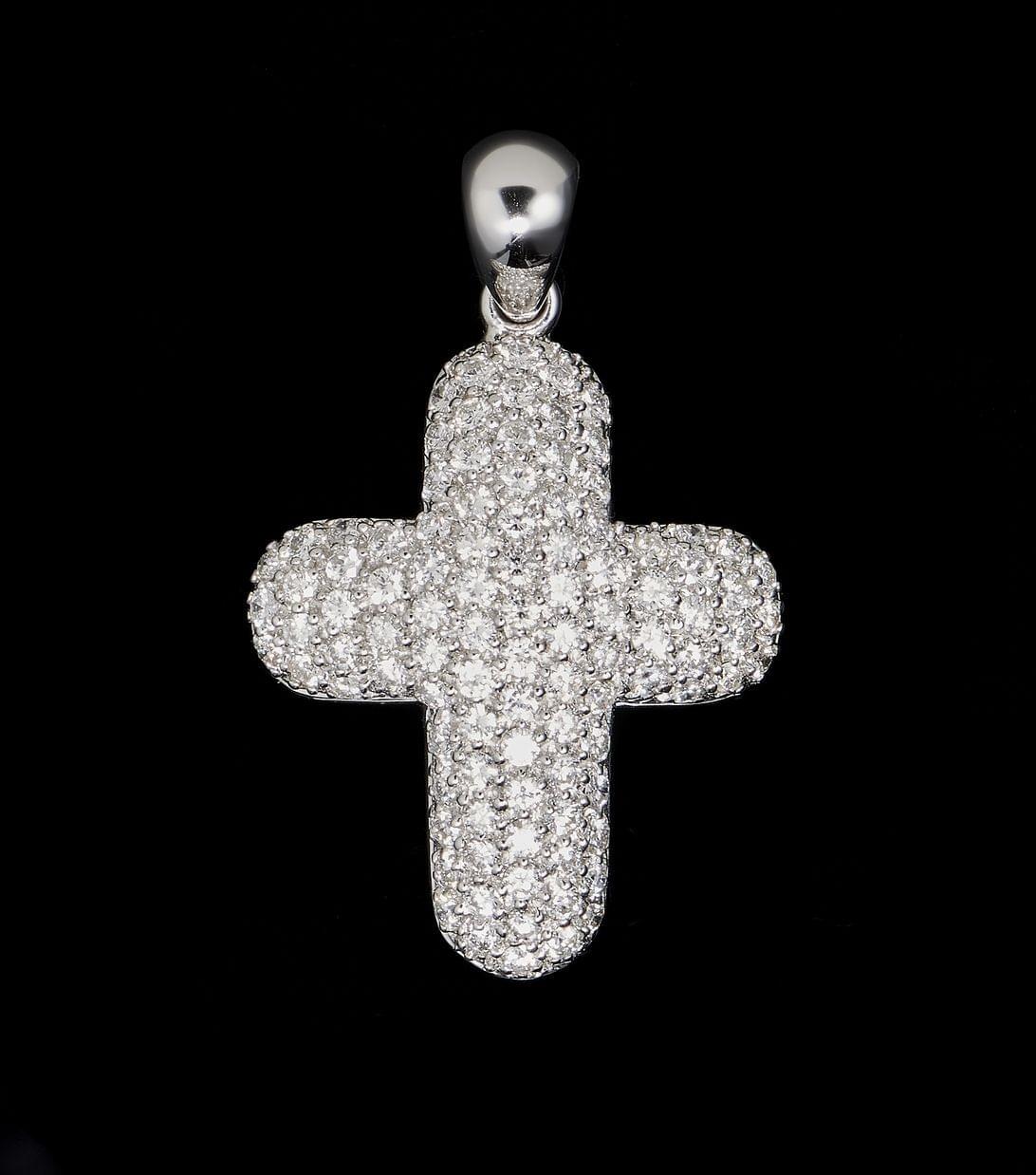 185. Pendentif retenant une croix pavée de diamants (env. 3 ct)