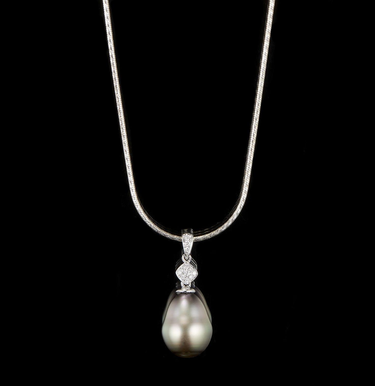 112. Pendentif retenant une perle de Tahiti en goutte rehaussée de diamants