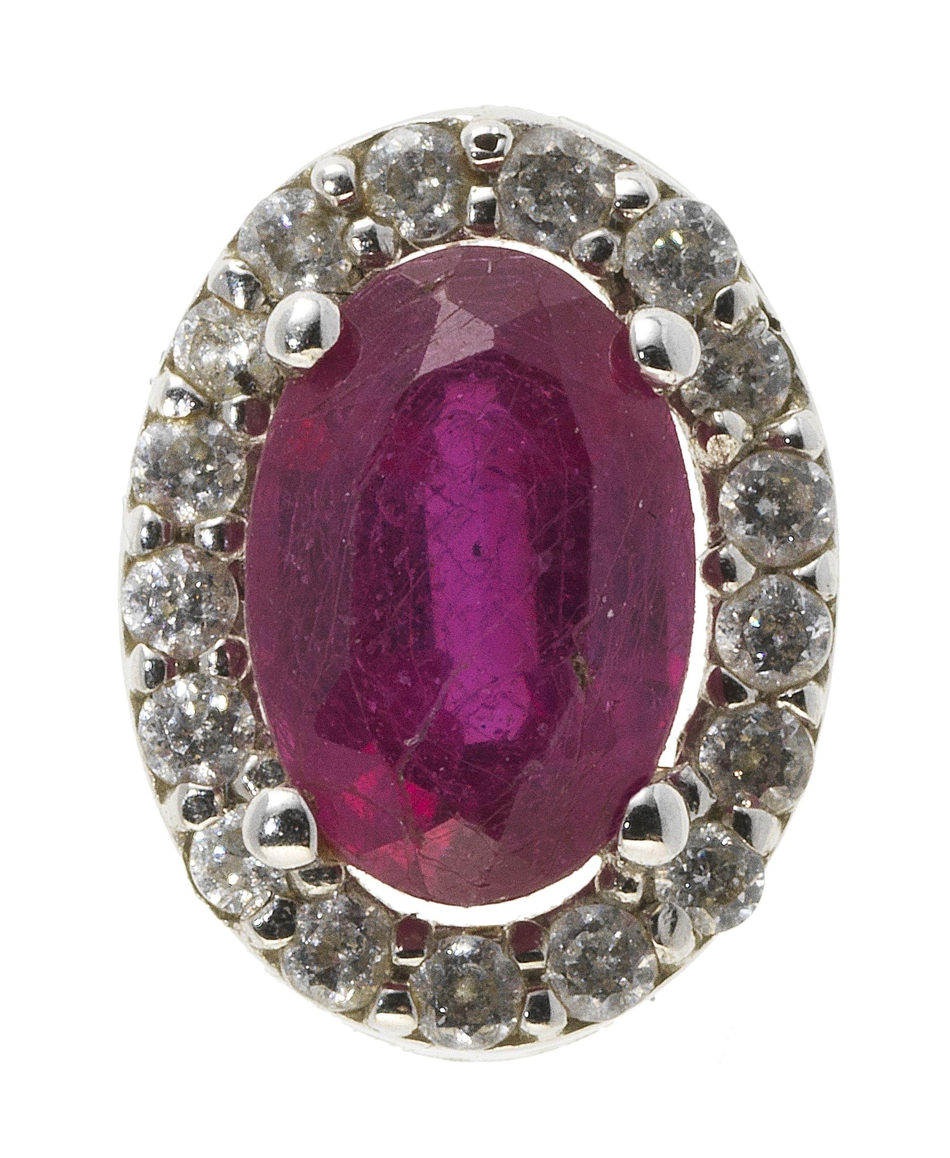 3091. Pendentif serti d'un rubis taille ovale (env. 0,5 ct) entouré de pierres d'imitation pour le diamant