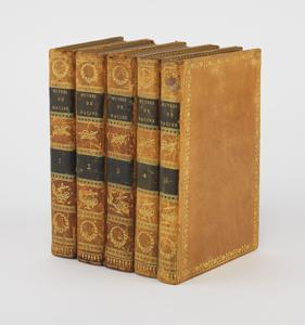 Cinq volumes in 8°, veau blond, dos lisses ornés, dentelle sur l...