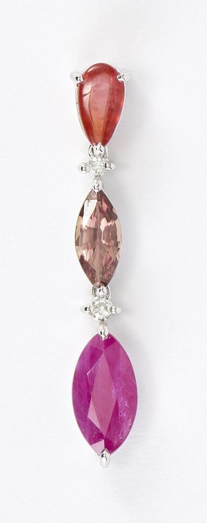 3308. *Pendentif serti d'un rubis taille marquise (env. 1,2 ct) et de saphirs de couleur taille marquise et taille poire alternés de petits diamants