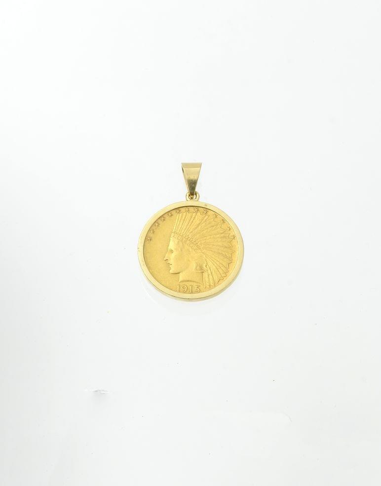 244. Porte-clés retenant une pièce de 10 dollars américains datée de...