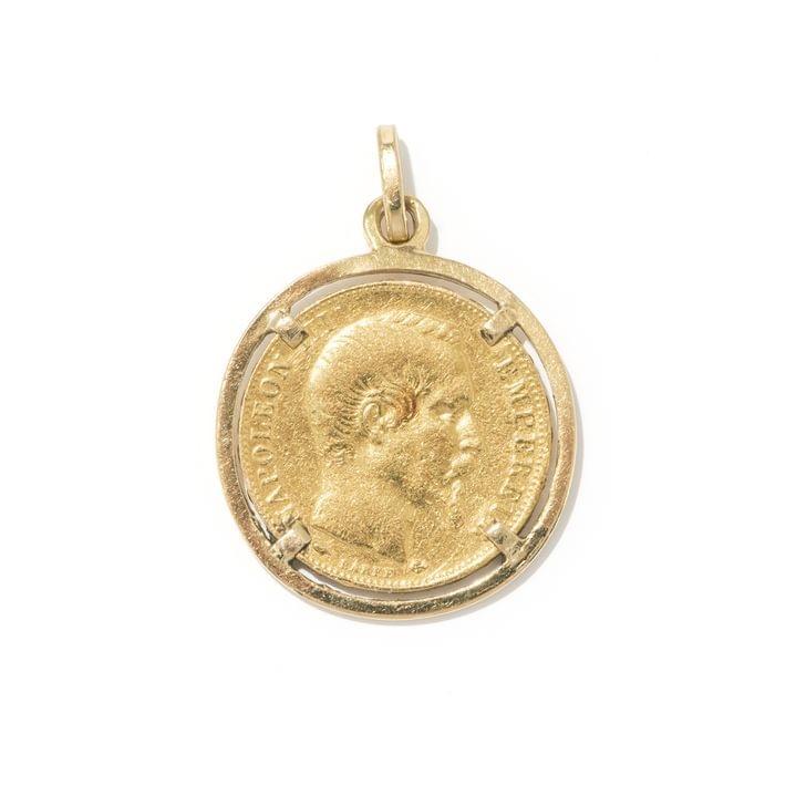 3219. Pendentif serti d'une pièce de 20 francs Napoléon III, 1857