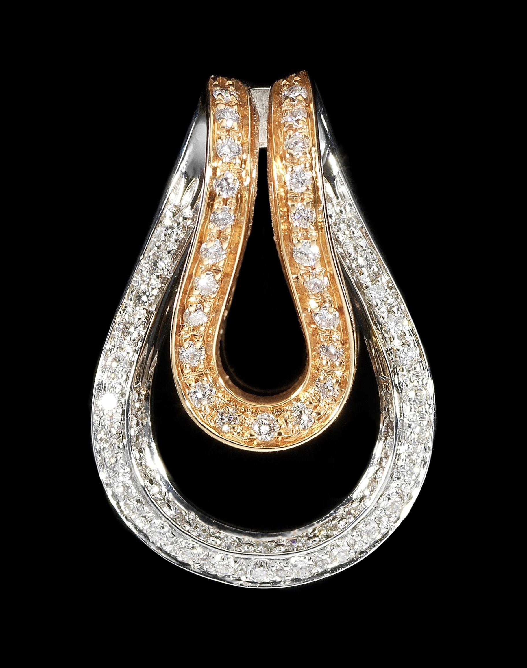 3184. Pendentif stylisé deux ors pavé de petits diamants